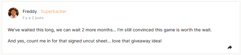 A l’air de la méfiance des backers, ils sont encore en retard (…) sur les actus comparés à d’autres!