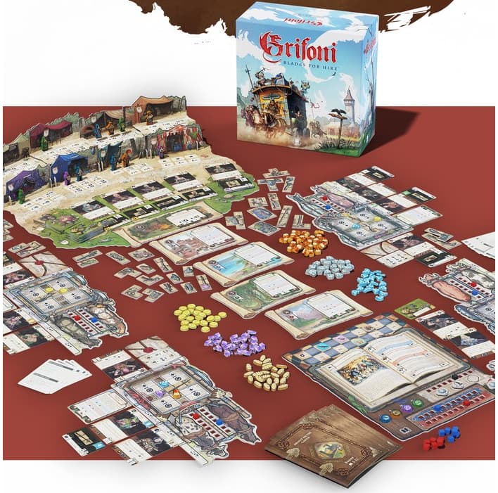 Grifoni : Blades for Hire est un jeu européen compétitif pour 2 à 4 joueurs qui combine placement d’ouvriers, gestion des ressources et narration à embranchements.