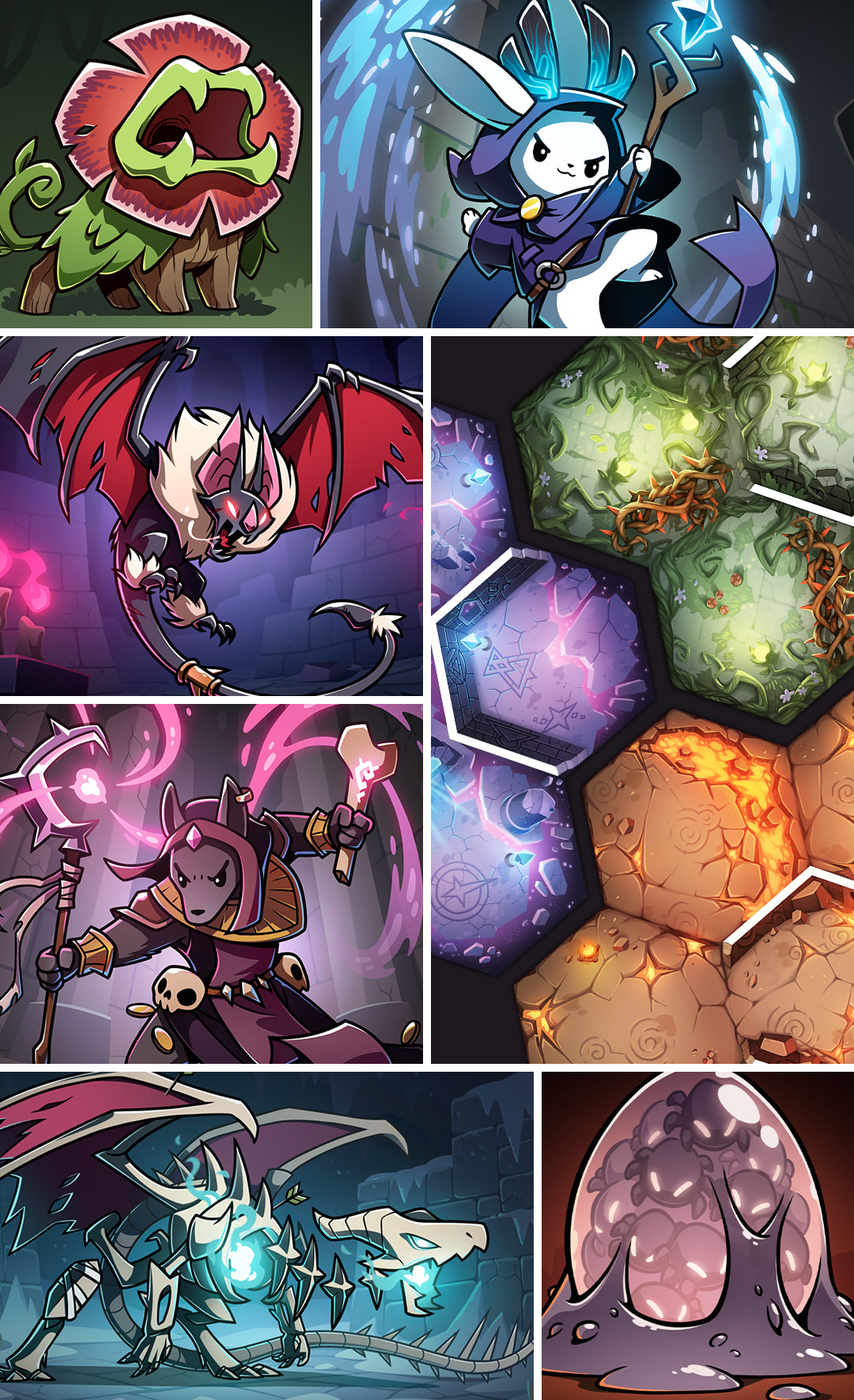 Chaque boîte est indépendante : elles contiennent toutes 4 héros radicalement différents, des ennemis ainsi que deux donjons spécifique et 4 boss différents, pour un maximum de modularité.