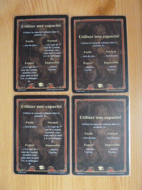 Pour les cartes du deck IA de la boîte de base, avez-vous aussi deux paires avec un nom identique (« Utiliser une capacité ») mais deux effets différents?