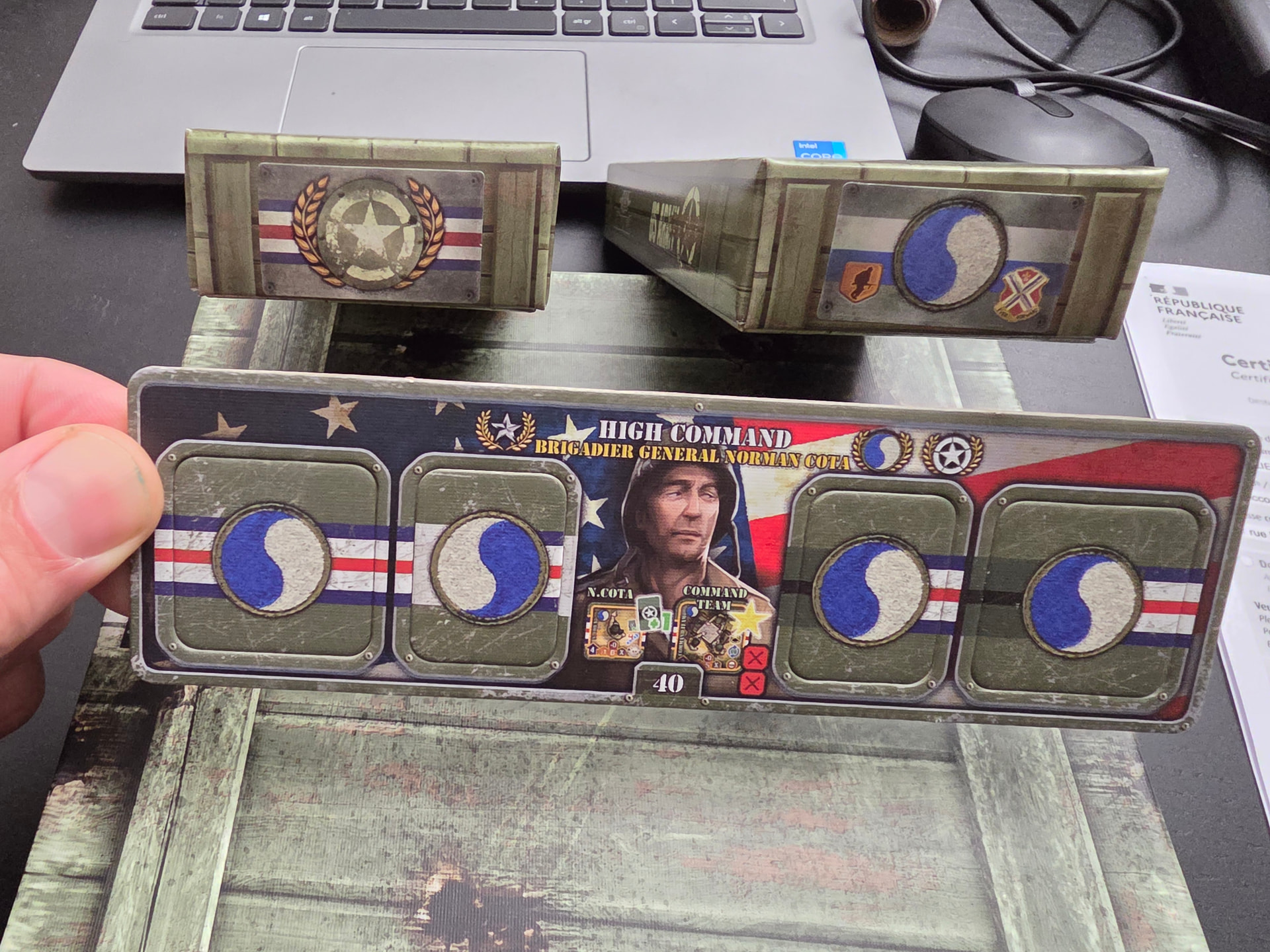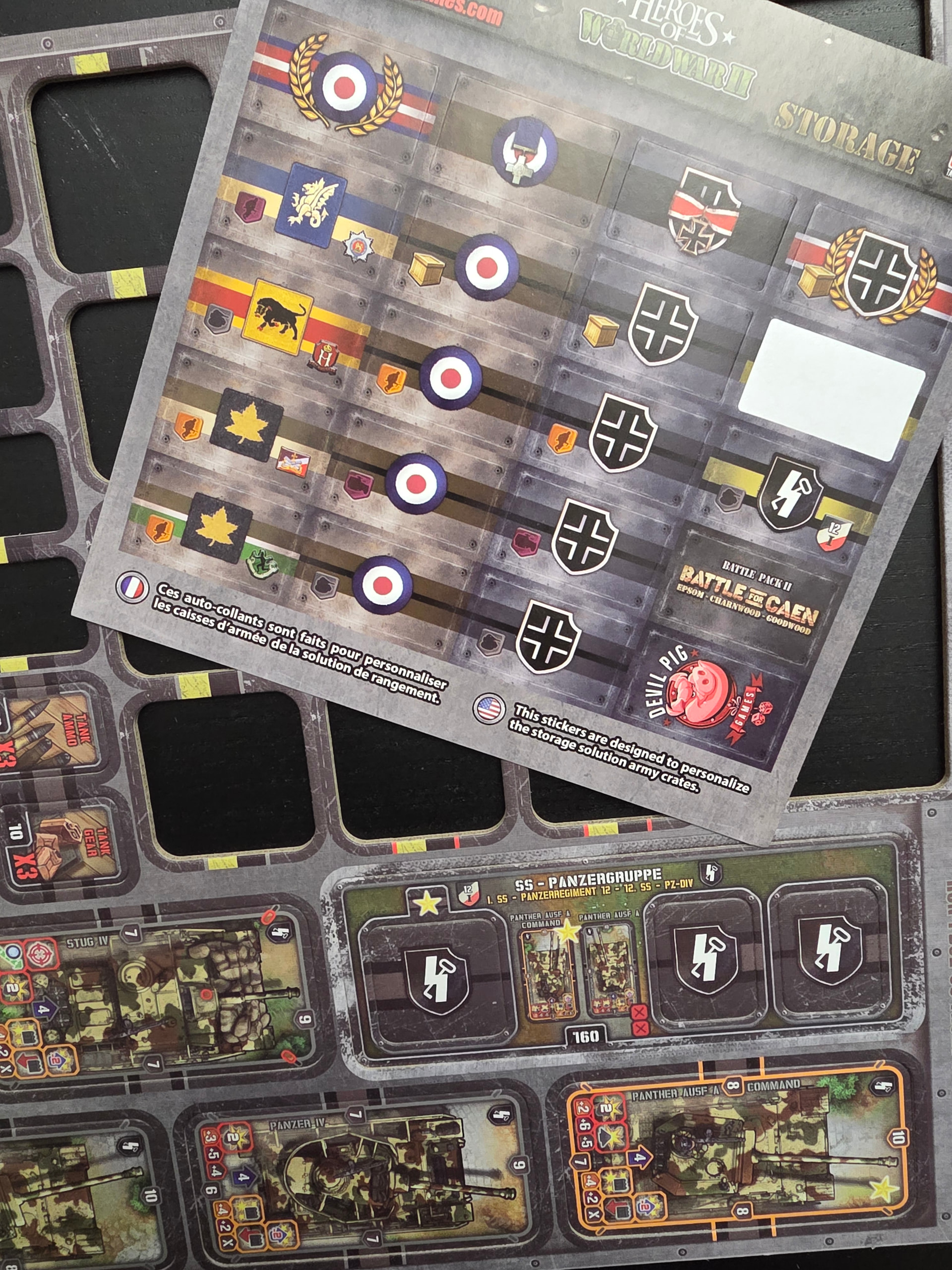 Ex1: war stories baron noire. Je retrouve bien l’étiquette pour mettre ds une boite tout ce qui est depunché (en l’occurrence la 29th armored brigade, 11th AR DIV), mais ce qui reste, ca se range comment ? Et au passage est ce que vous rangez tous les tuiles personalisation ensemble ou vous mes laissez avec le personnage qui etait sur la meme planche