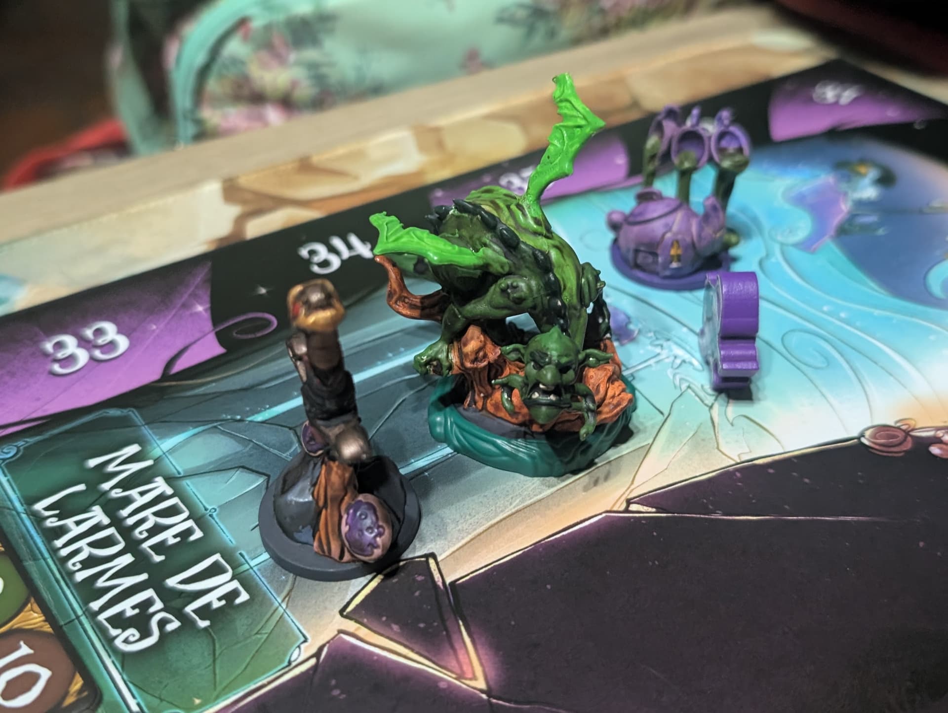 Blood Rage (dont un CR arrivera bientot, dès qu’il revient de peinture) brille par son intensité stratégique dans les affrontements pour le contrôle des zones. On retrouve ici cet aspect dans les batailles de Wonderland’s War, mais avec une touche de légèreté grâce à la mécanique de bag-building. Quant à Quacks of Quedlinburg, le suspense de chaque tirage dans votre sac est ici amplifié par l’importance des combats et des choix tactiques qu’ils impliquent.