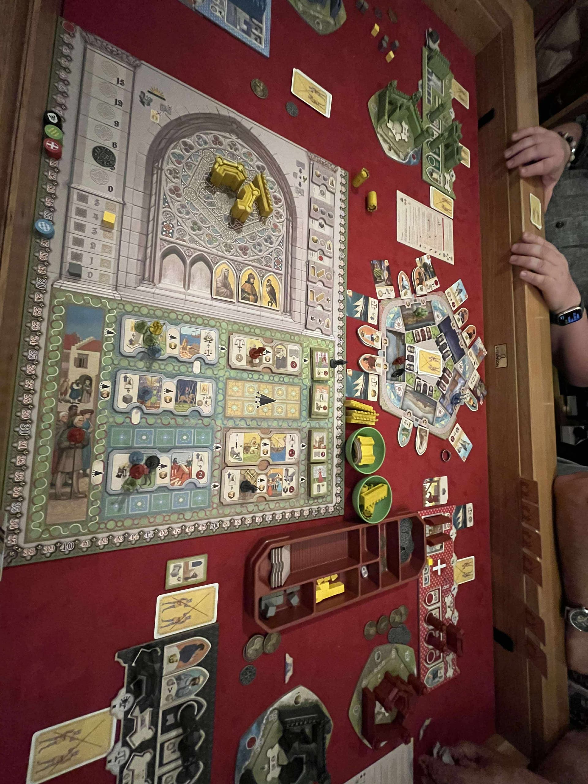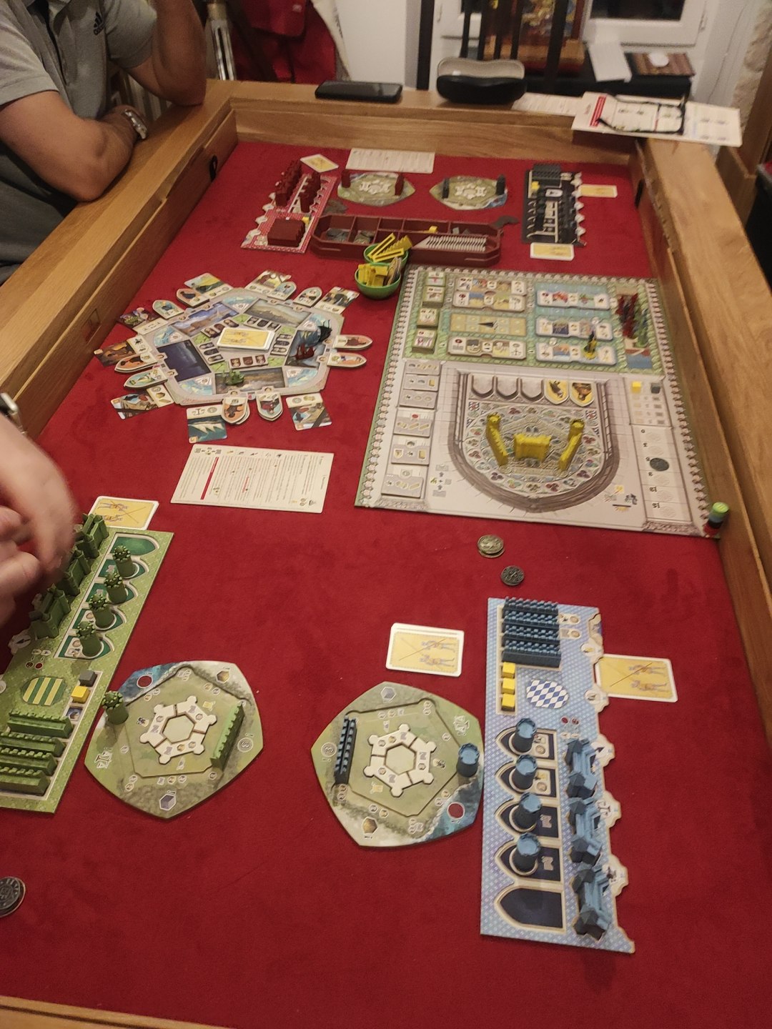 J’ai beaucoup apprécié notre partie, énormément de choix et donc de renoncement. De frustration quand nos adversaires construisent ou détruisent le château de Frédérique II (qui le temps d’une partie s’est appelé Fredo, ce qui vu l’état de ses ruines à la fin de la partie, lui allait bien)