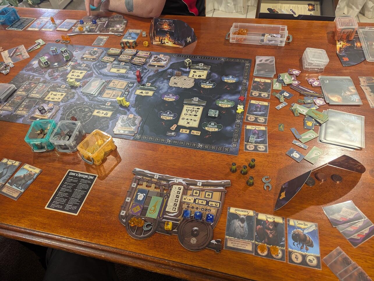 Un joueur voulait jouer à ce jeu dont je n’avais jamais entendu parler. On incarne un marchant, on achète du merdier (des armes, armures, luth, potions, etc…) et on va le livrer soit pour remplir des commandes (pour la gloire !) ou les vendre à des aventuriers (pour l’argent), ah et on fait taxi aussi.