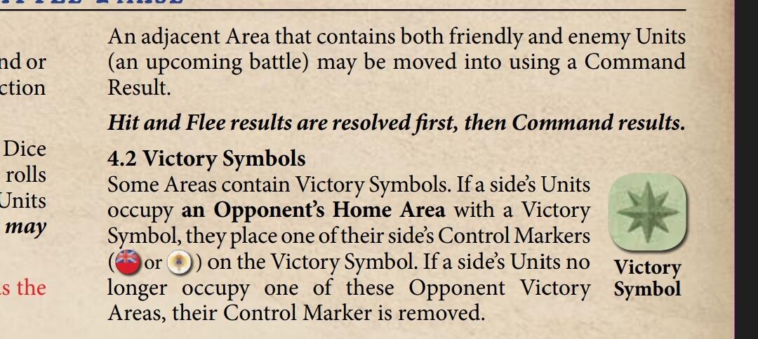 Quand on rentre sur une case avec un point d’intérêt en territoire autochtone ou de la faction opposée, on pose un marqueur victoire de votre camp qui va occuper ce territoire tant qu’il n’est pas repris par le camps opposé.
