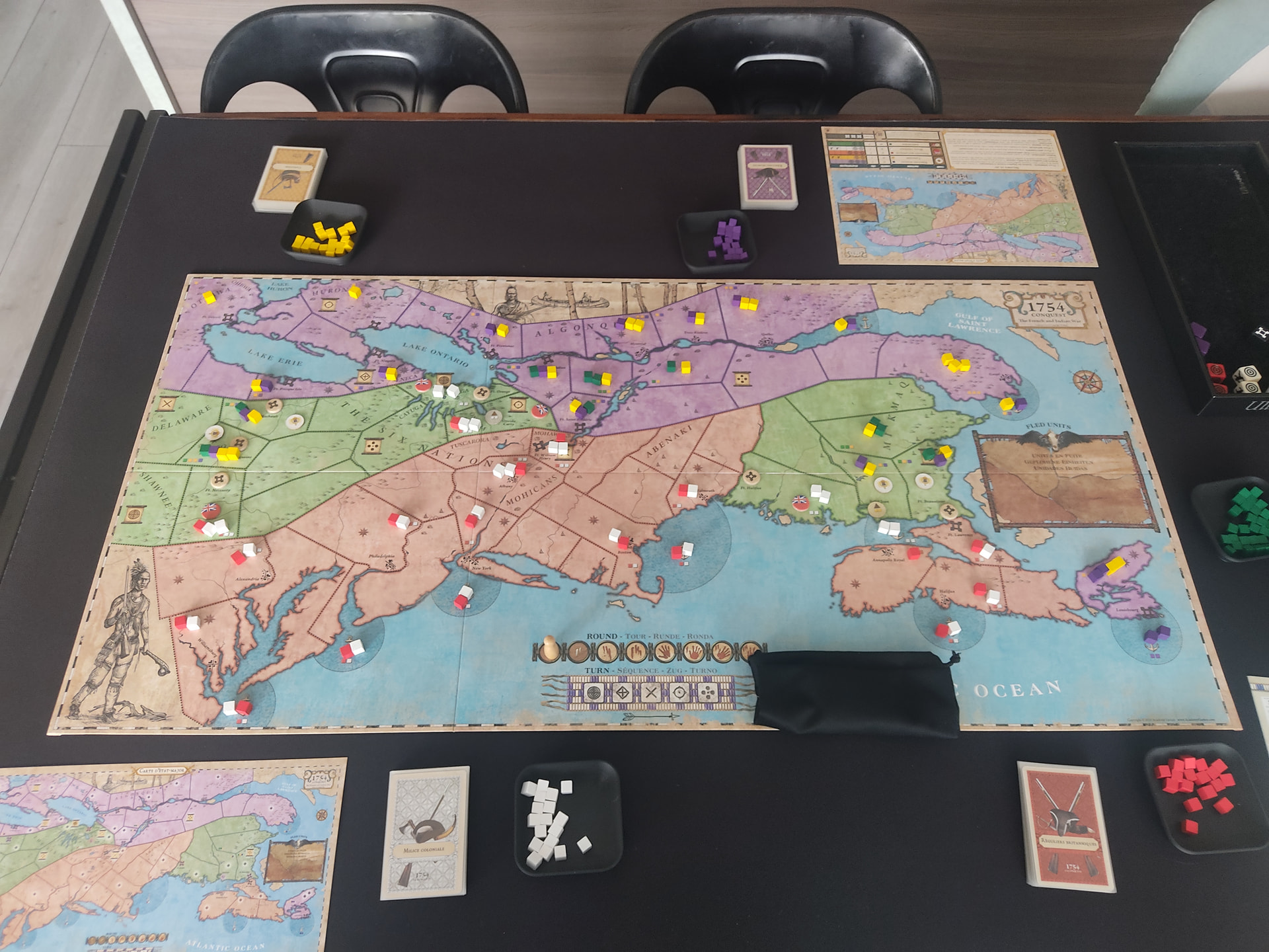 Dans ce warteau card driven accessible, pour 2 a 4 joueurs, 2 camps s’affrontent : les Britanniques et les Français. Chaque camp est divisé en deux factions alliées : si les Britanniques peuvent compter sur une milice coloniale, l’armée française s’appuie quant à elle sur des soutiens canadiens. En outre, une cinquième faction « neutre » participe à l’opposition : les natifs amérindiens ; les unités de ces derniers pourront devenir des alliés par opportunité au cours du jeu, et pourront faire basculer des batailles. L’objectif du jeu est de reconstituer le début de la guerre de Sept Ans. Il s’agira de vaincre votre adversaire en occupant plus de points stratégiques que lui après un certain nombre de manches variable d’une partie à une autre.