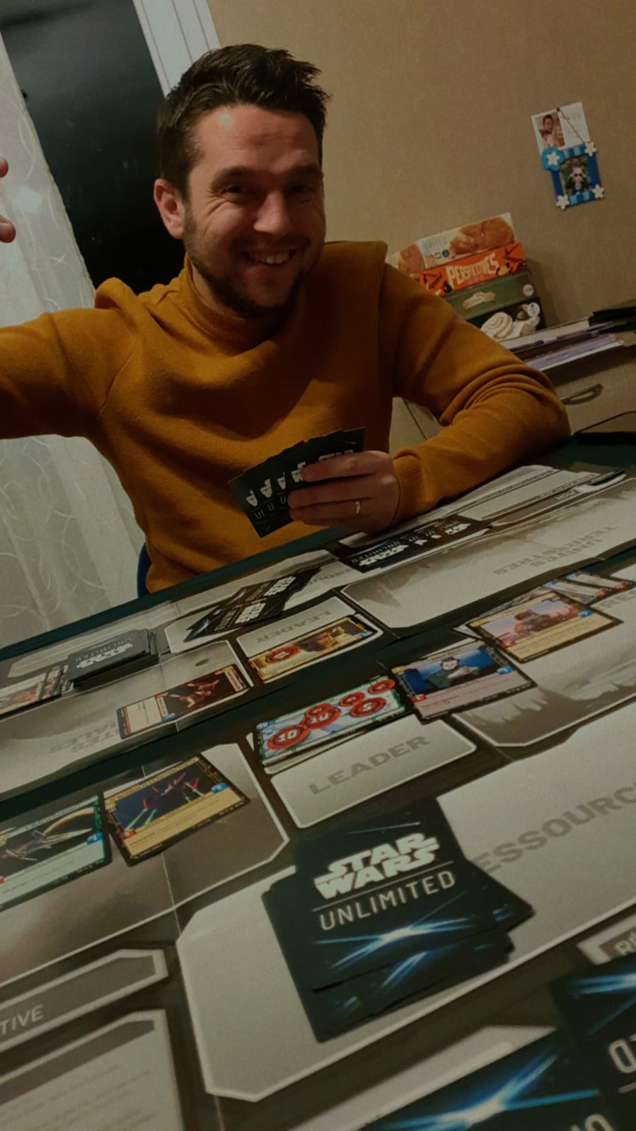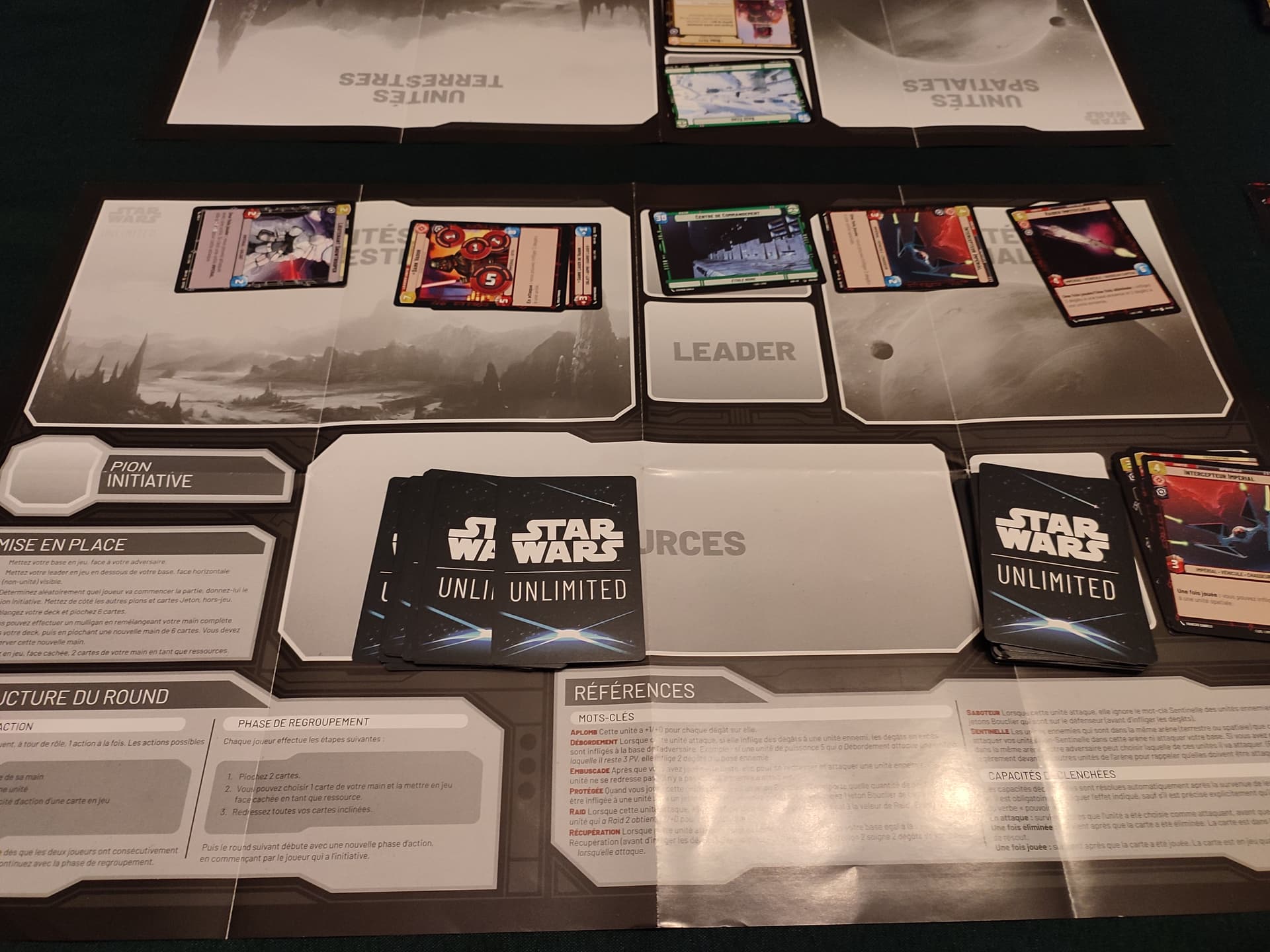Je ne me souviens plus trop de la première partie, si ce n’est que tous les 3 avions pas mal de bouclier, cela nous a surpris par rapport au jeu de base. Je remporte par KO mais ne sais plus avec quel deck.