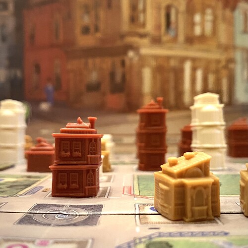 C’était notre première fois autre que le jeu de base donc c’était très bien ainsi, sans trop noyer sous les informations. Nous découvrions de toutes façons les nouvelles cartes du marché et rien que ça, c’était déjà bien.