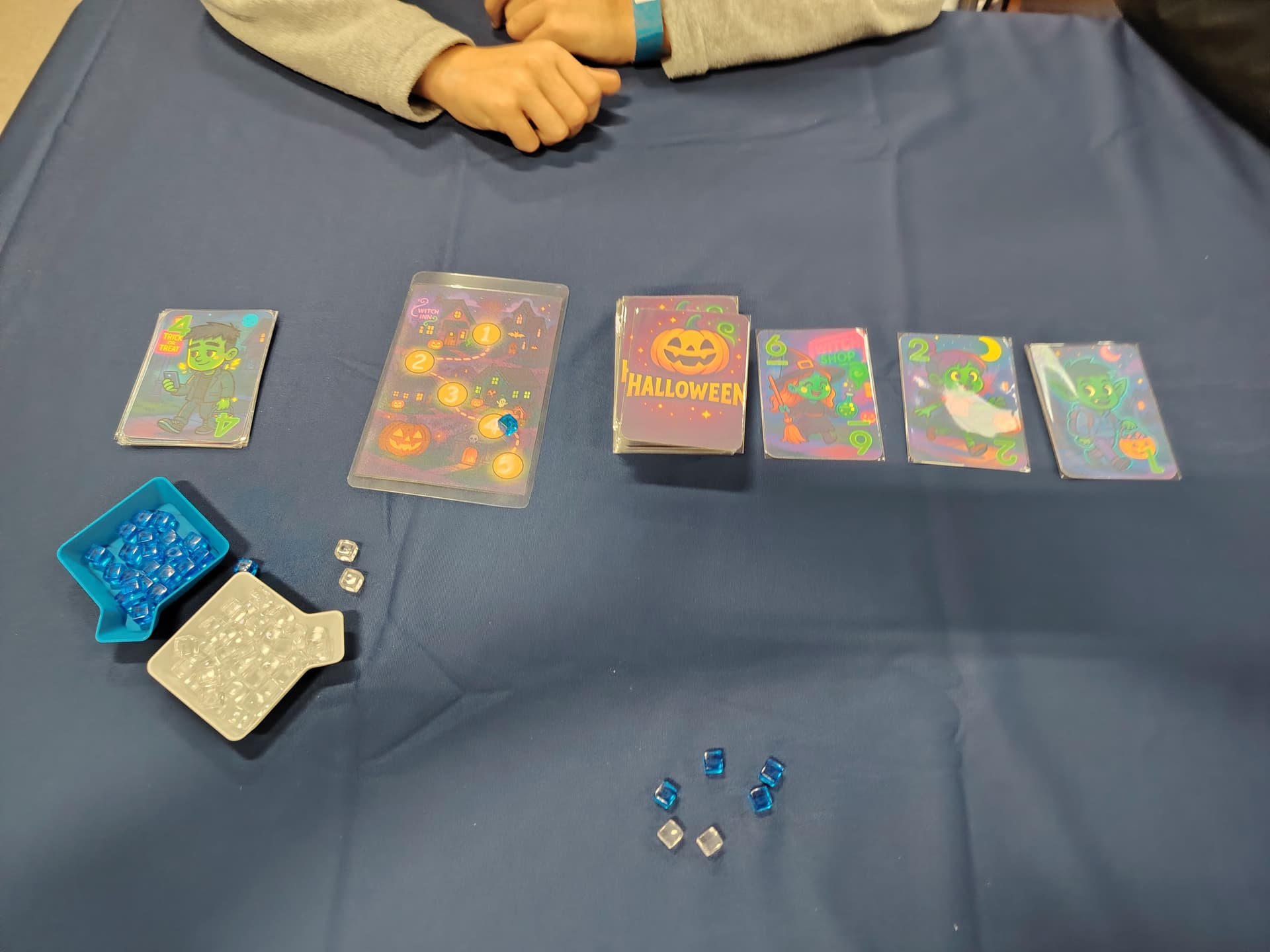 On retourne une première carte : c’est le nombre de bonbons que l’on vient d’avoir (6 sur la photo au dessus).