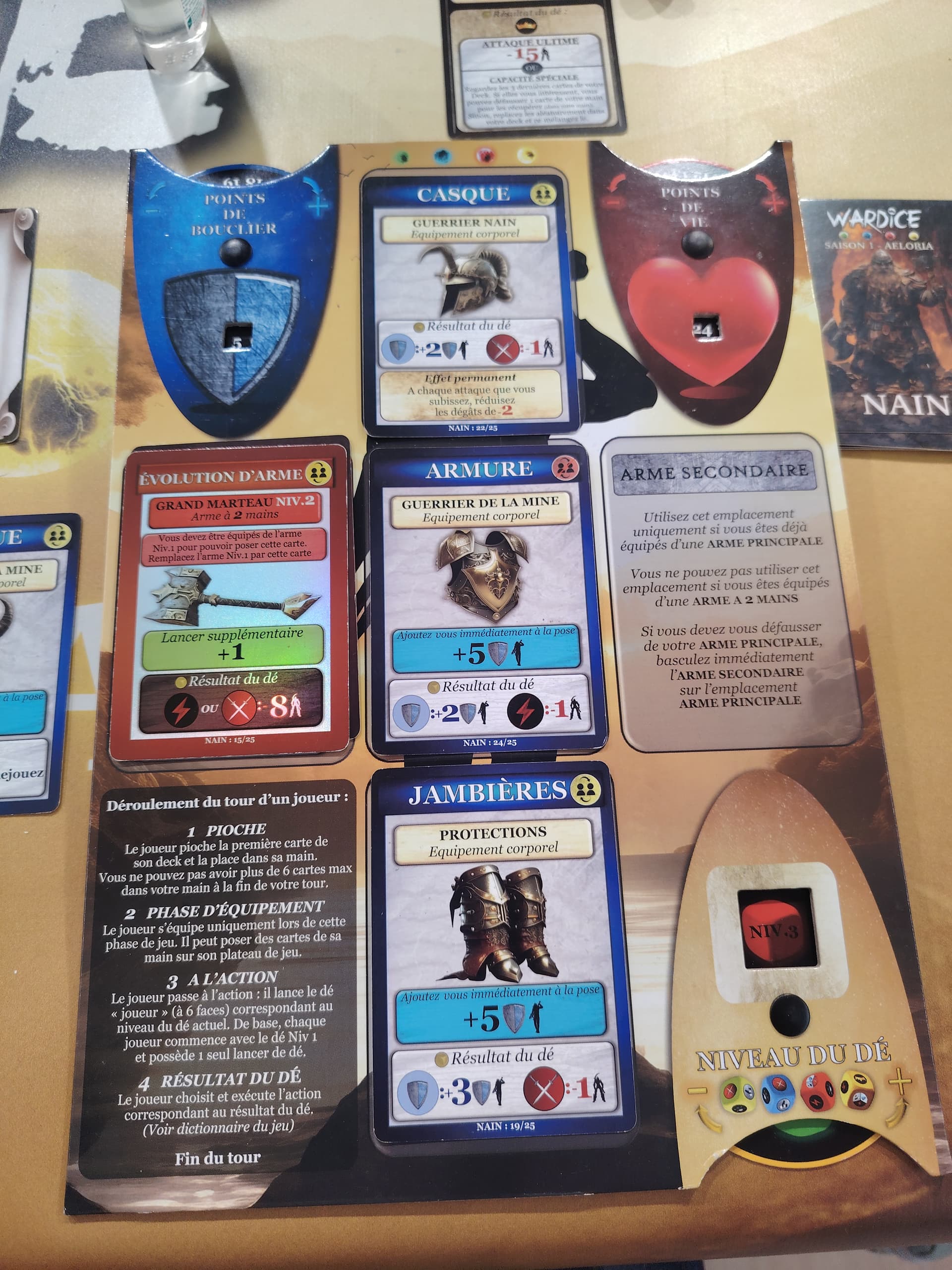 Le système de plateau est vraiment top avec les zones de cartes et les compteurs intégrés (bouclier, PV et niveau du dé).