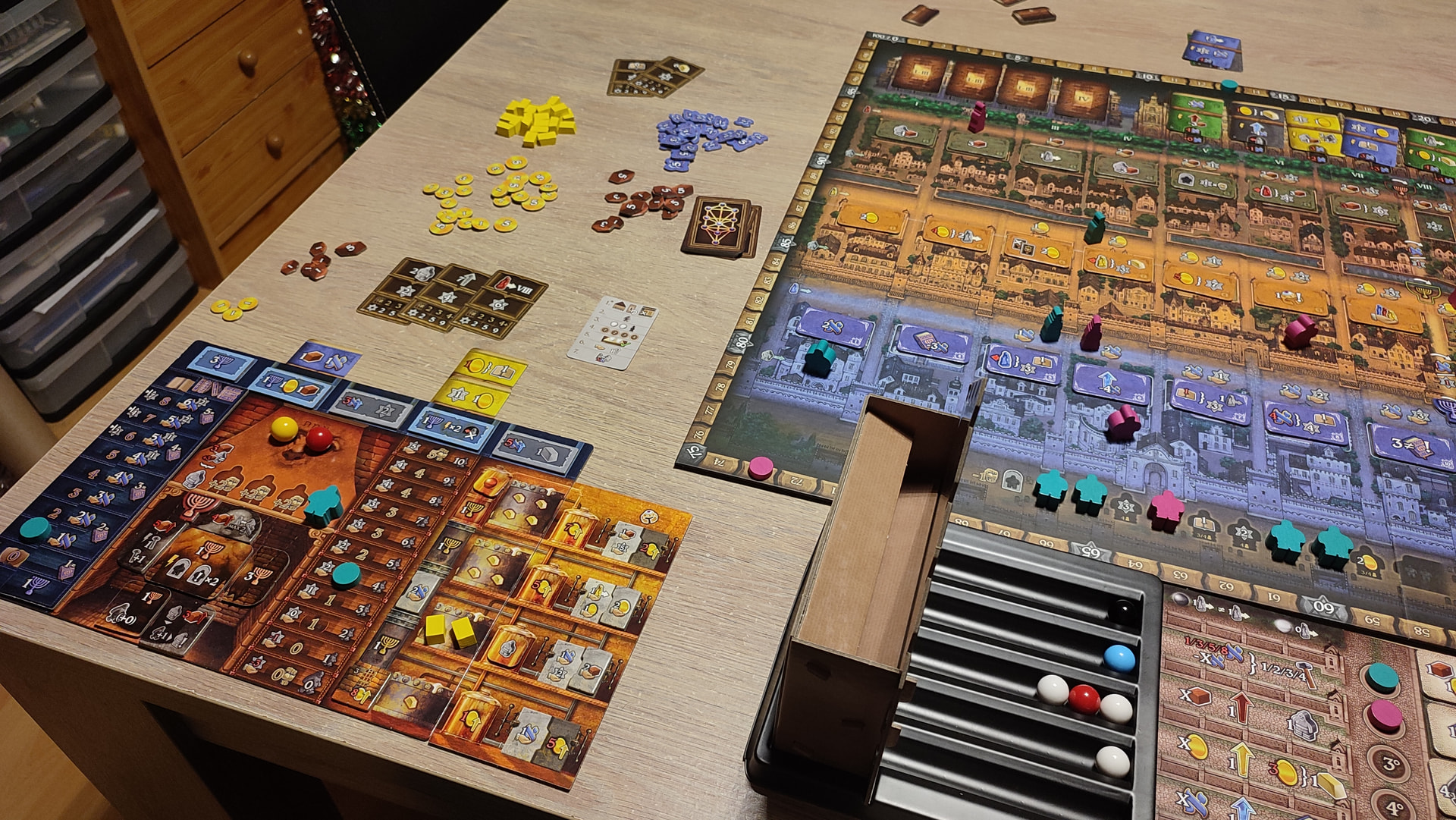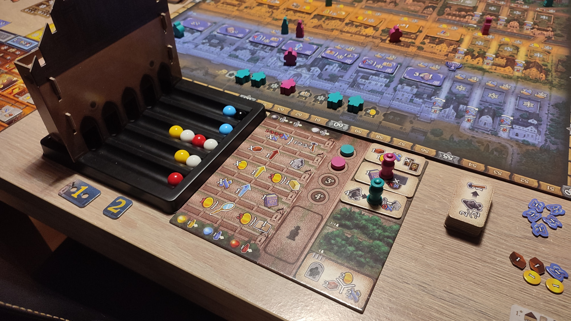 Je pense que ce jeu prend une autre dimension avec l’insert réalisé par TowerRex, qui offre une synagogue trop stylée pour gérer les billes d’action.