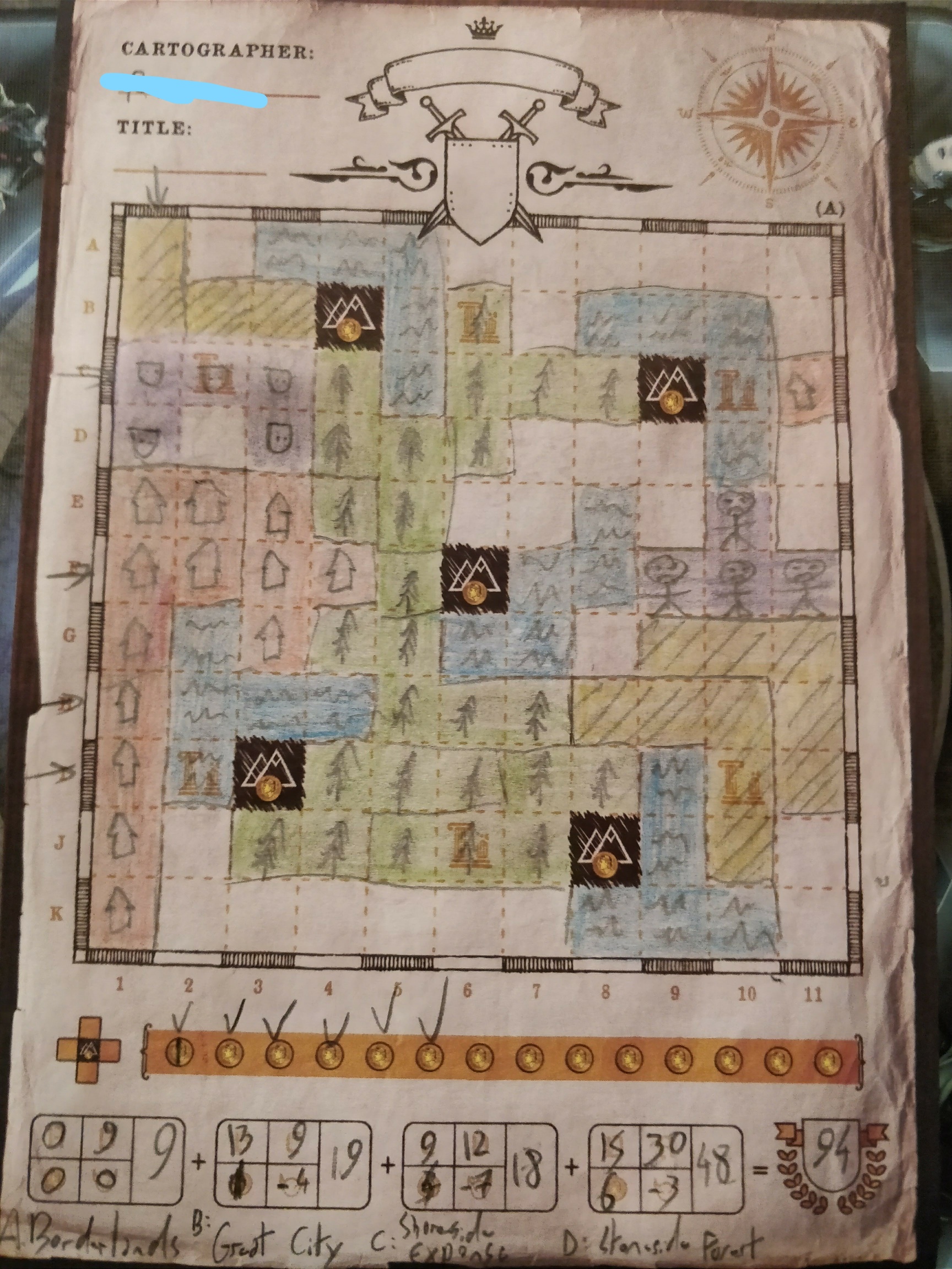 Lors de ma première partie je lui avais reproché « c’est cool mais un peu long pour juste un roll’n’write » (par rapport au 20min et la simplicité d’un Welcome), mais bon il est quand même très cool, c’est vraiment sympa de faire sa carte.