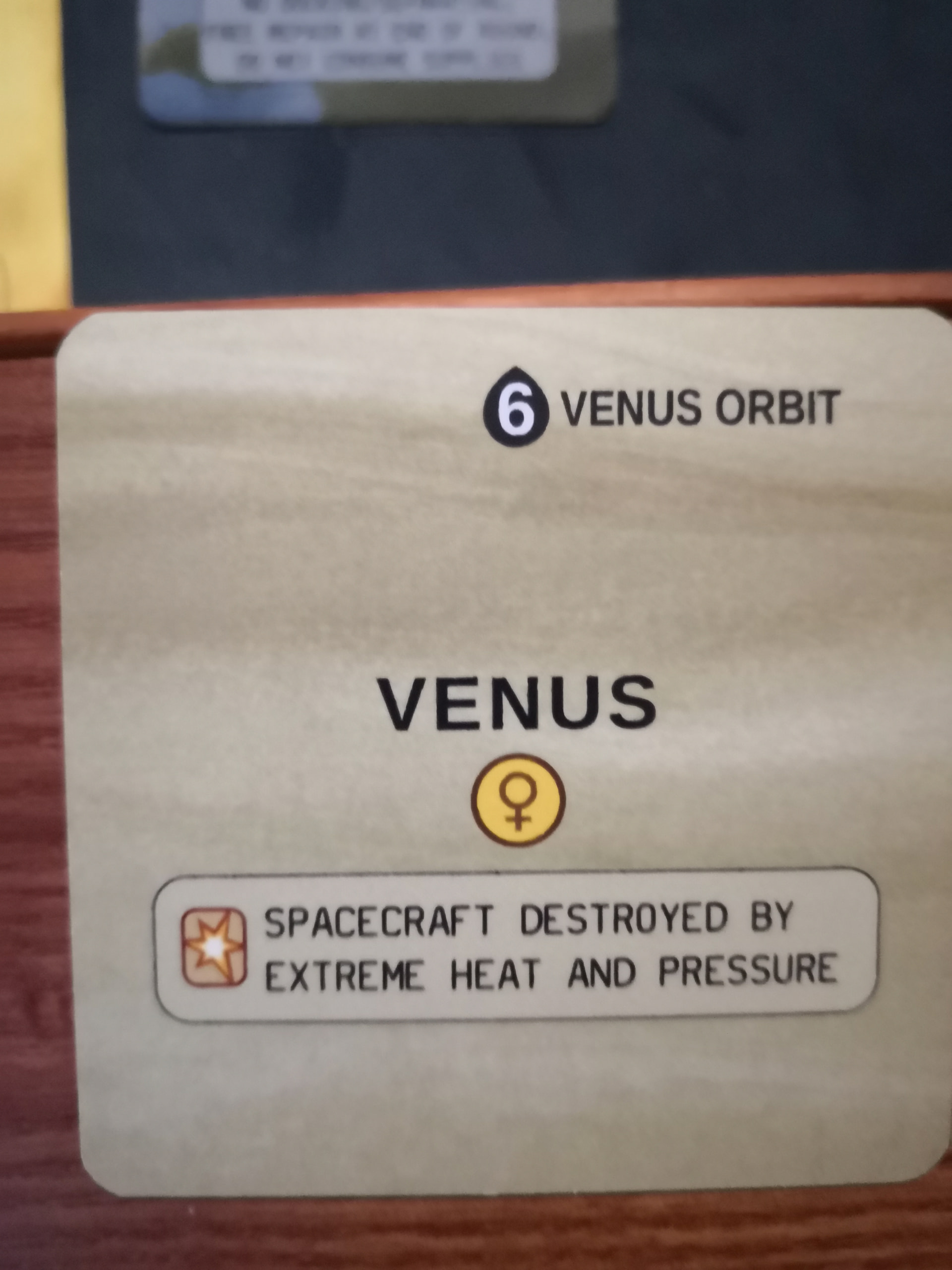 Après analyse des missions, me pensant malin, je me dis que les 2 missions vers Venus me permettent de gagner assez de points pour gagner : des astronautes dans le voisinage de Venus (Venus Fly-By) et des astronautes sur Venus puis de retour sur Terre : ça fait 46 points sur 86 disponibles. Les autres missions sont très réparties dans le système solaire et il est difficile d’optimiser leur réalisation (faut aller sur Mercure, explorer Cérès. explorer Phobos, aller sur la Lune)