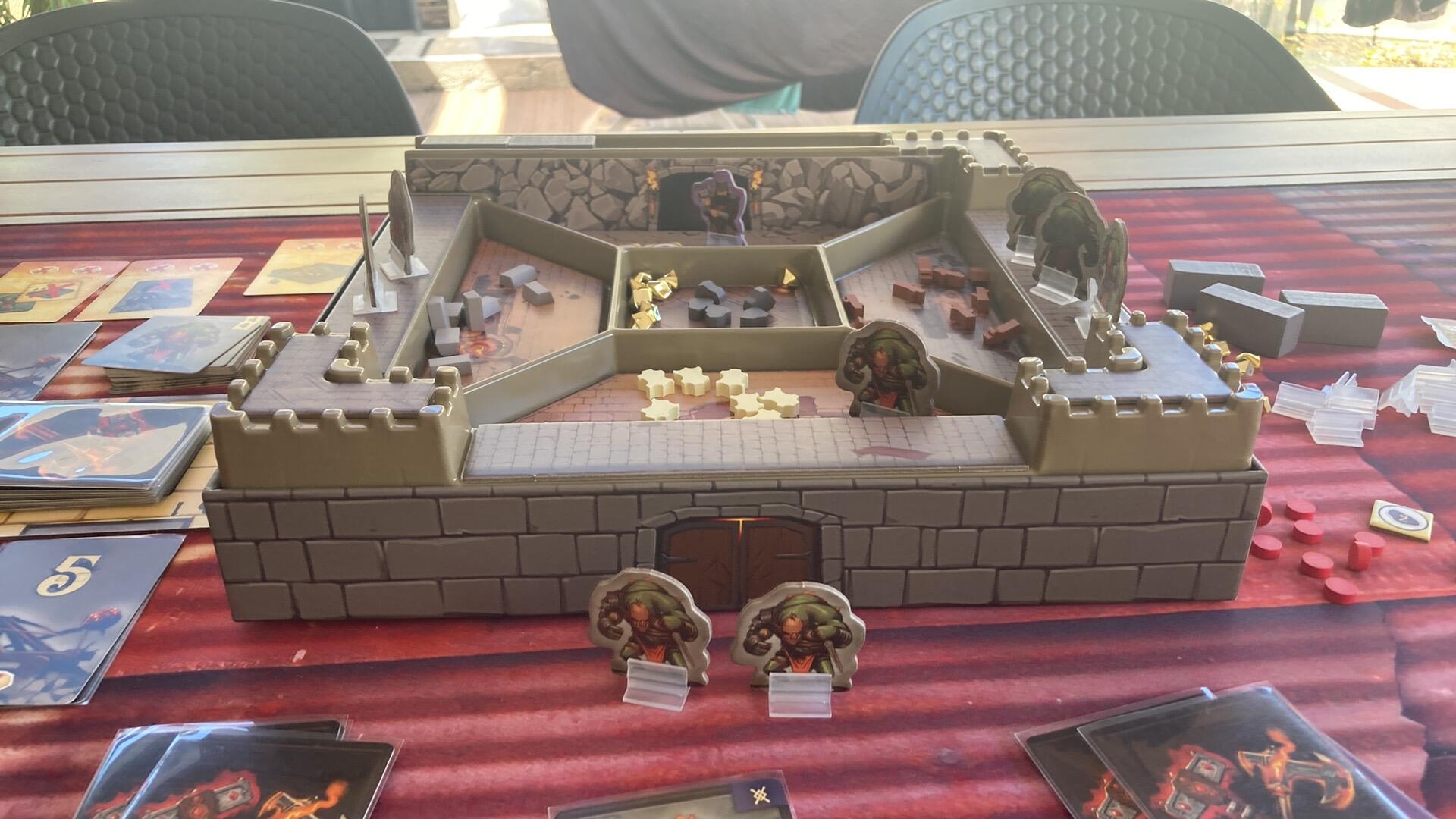 A 3 (seule autre configuration testée), il tourne très bien. Un joueur peut rester sur les remparts pour gérer les ennemis quand les deux autres s’activent sur les ressources et au tunnel. Franchement, j’ai vraiment aimé. A 4, je suppose qu’il tourne aussi bien.
