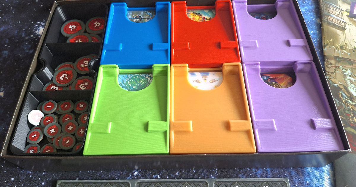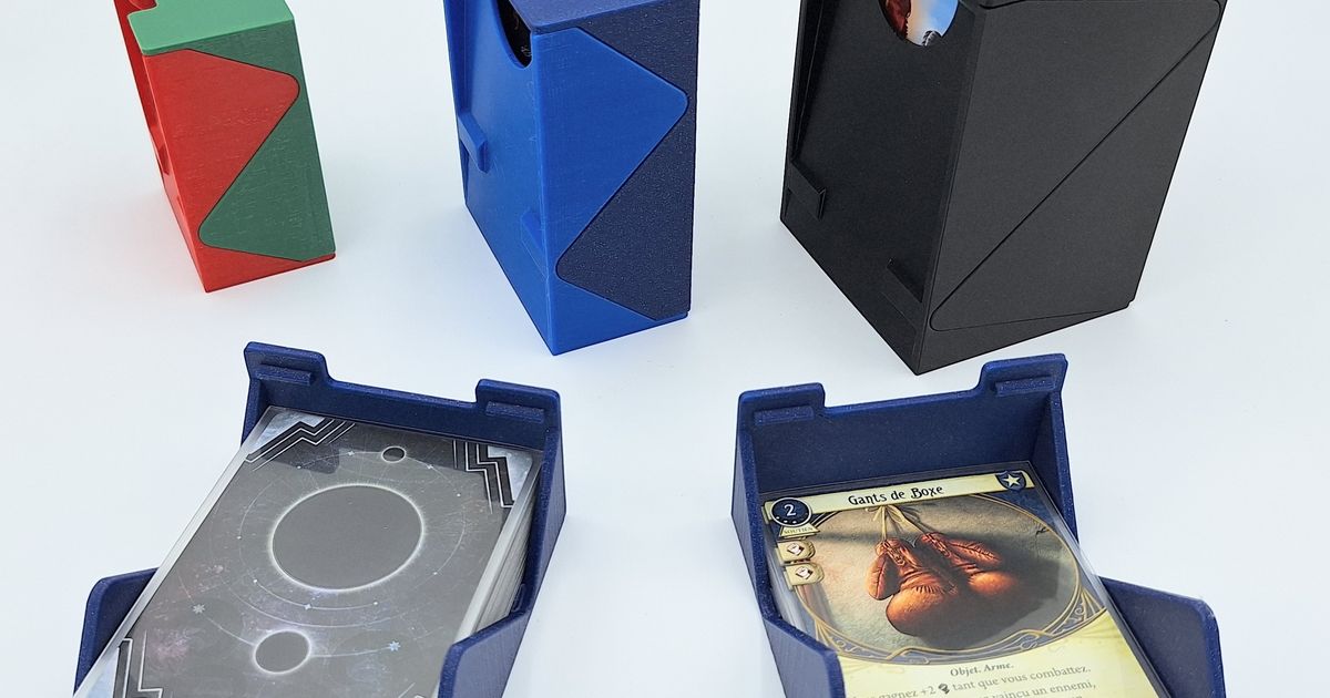 J’ai vu passer ça. Un petit rangement pour cartes. Je trouve l’idée très intérréssante. C’est uniquement pour un paquet de cartes standard, mais je me demande si ce n’est pas adaptable, par des personnes compétentes, pour de plus gros / petits paquets de cartes, mais surtout avec cartes sleevées. Ca pourrait remplacer les sachets plastiques dans certaines boites de jeux.