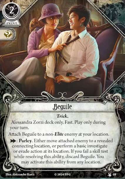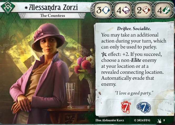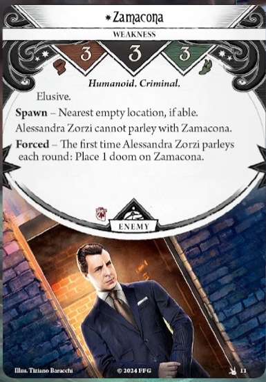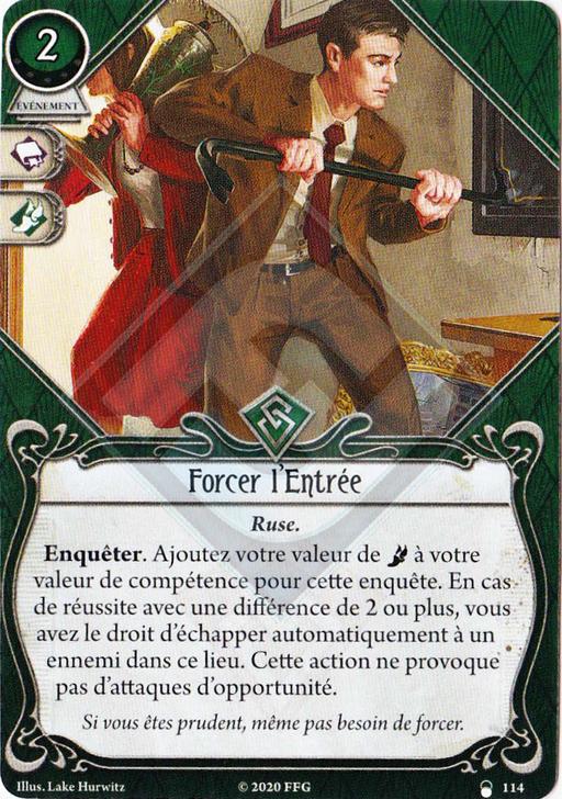 Ici, si vous parvenez à enquêter avec la différence idoine (souvenez-vous que ça reste un test de Connaissance, interdit de mettre des icônes d’Agilité ici ; cf. règles souvent oubliées), vous pouvez incliner un ennemi dans votre lieu, qu’il soit engagé avec vous ou non.