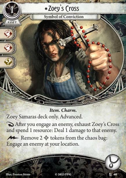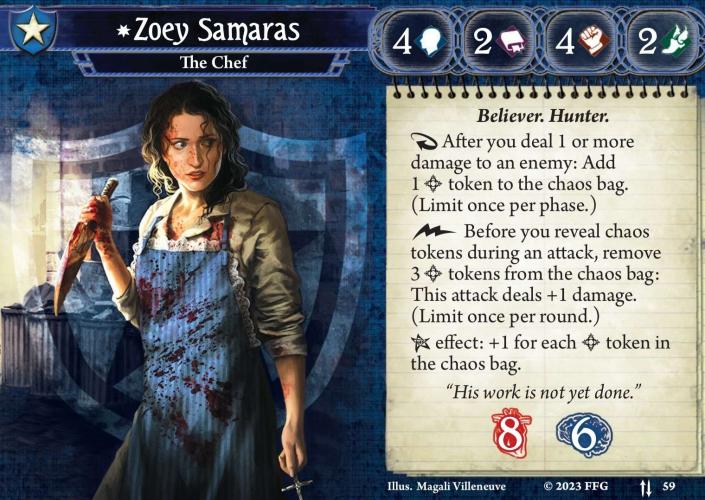 Zoey peut désormais engager un ennemi en déclenchement zigouigoui au prix d’une dépense de 2 bénis du Chaos Bag.