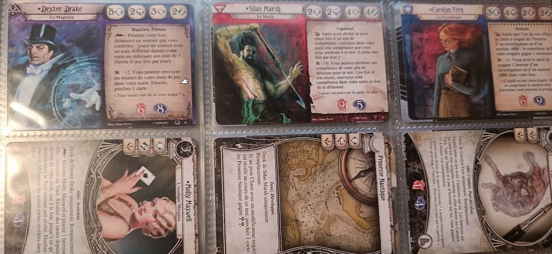 - Les alternatifs : trouvables dans les bouquins (il y a des romans Arkham Files). C’est l’investigateur que tu connais avec une illustration différente et des cartes signatures originales.
