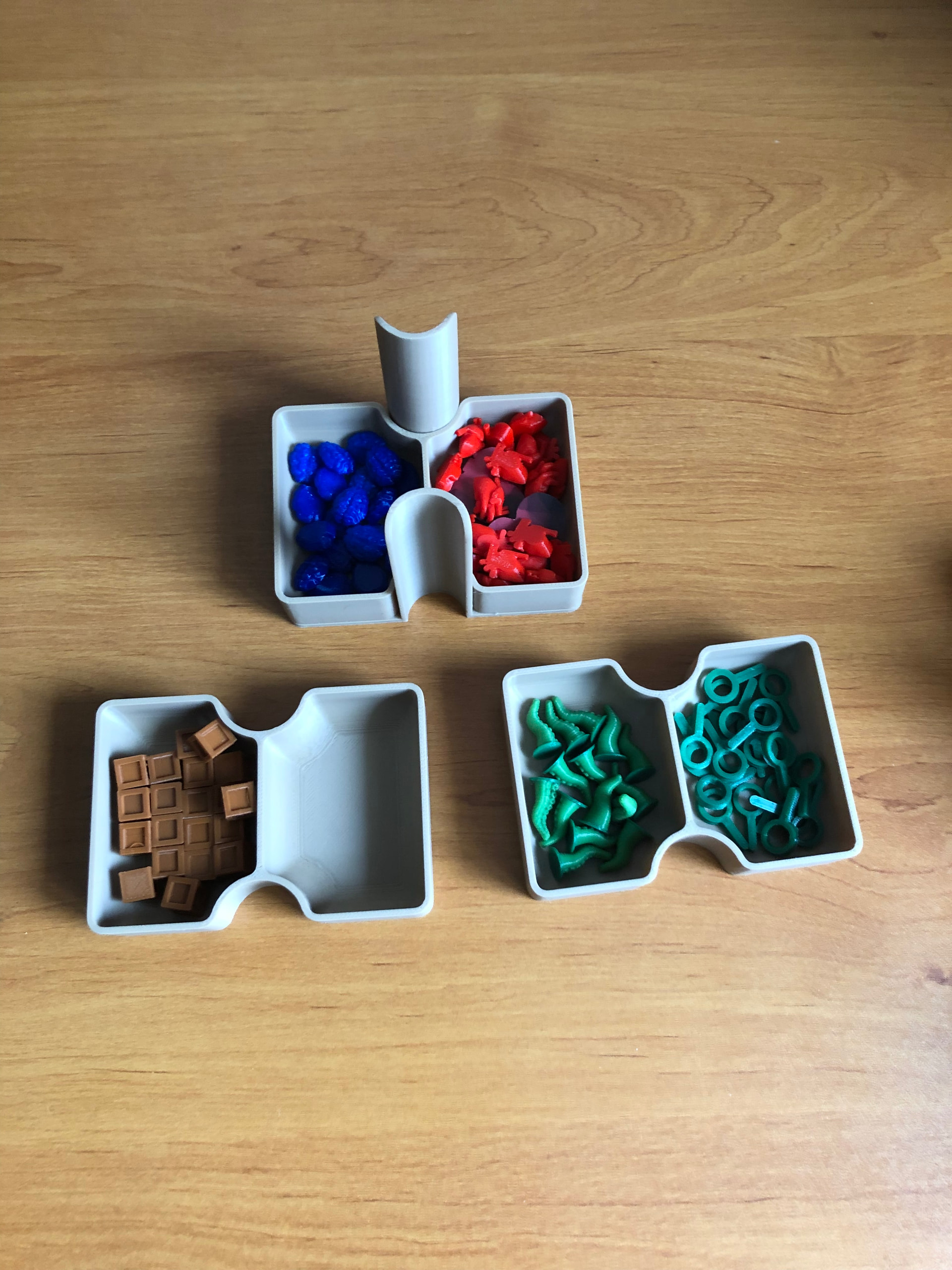 Pour les accessoires, les rangements font la taille d’un emplacement dans les boîtes. C’est librement inspiré des modèles d’ @hohyss, merci à lui .Plusieurs modèles différents suivant l’utilisation :