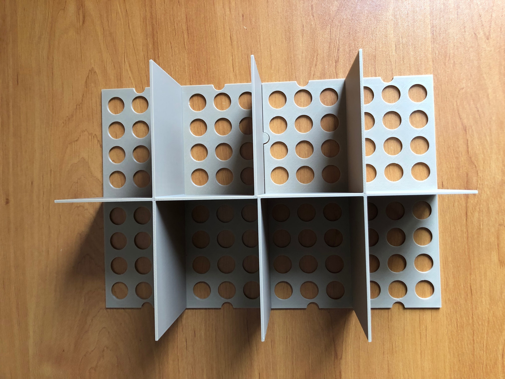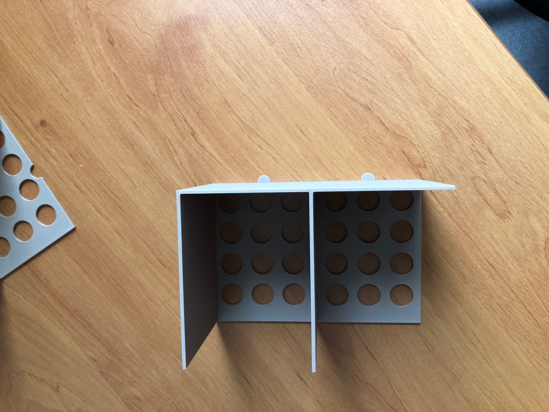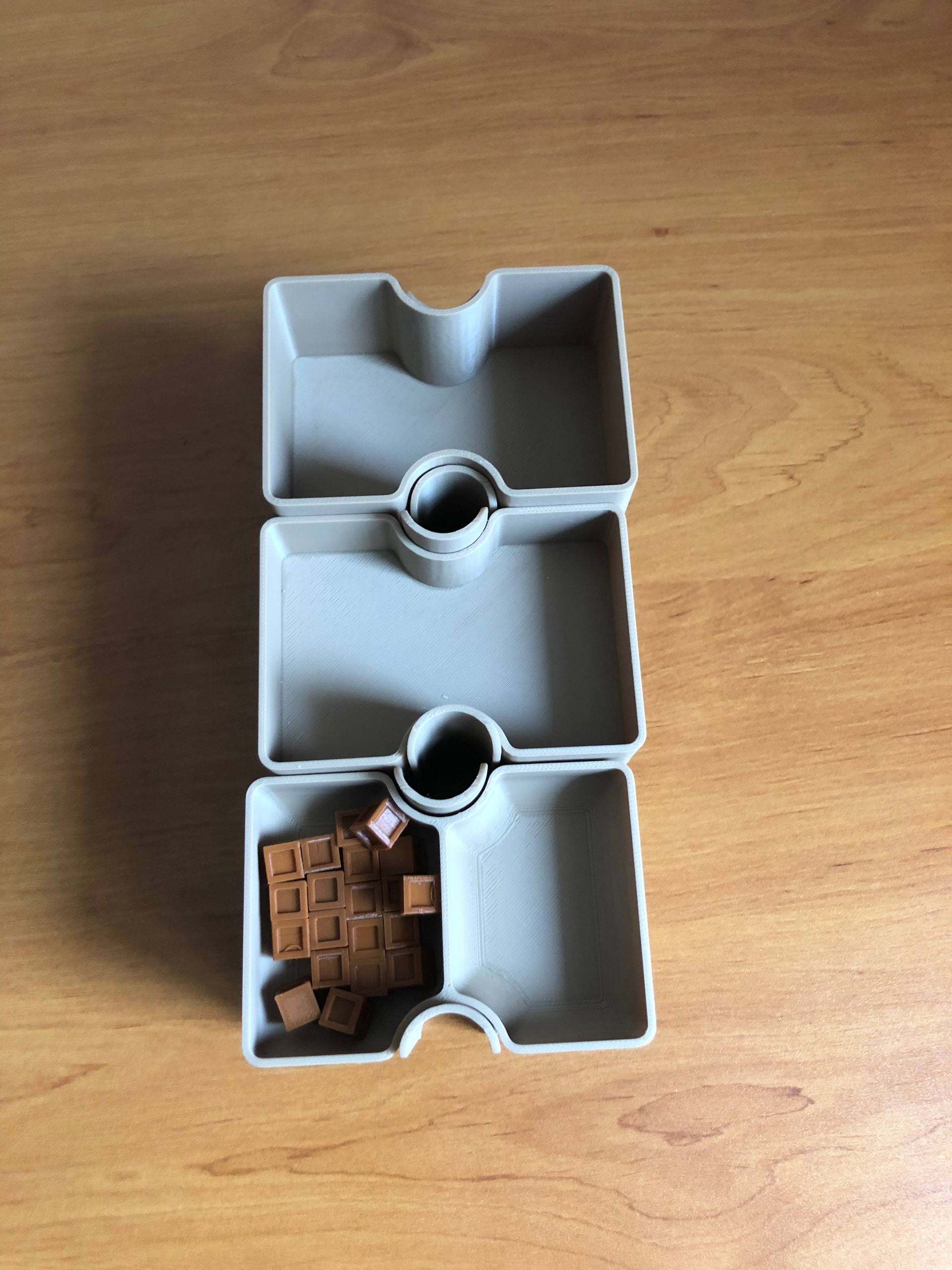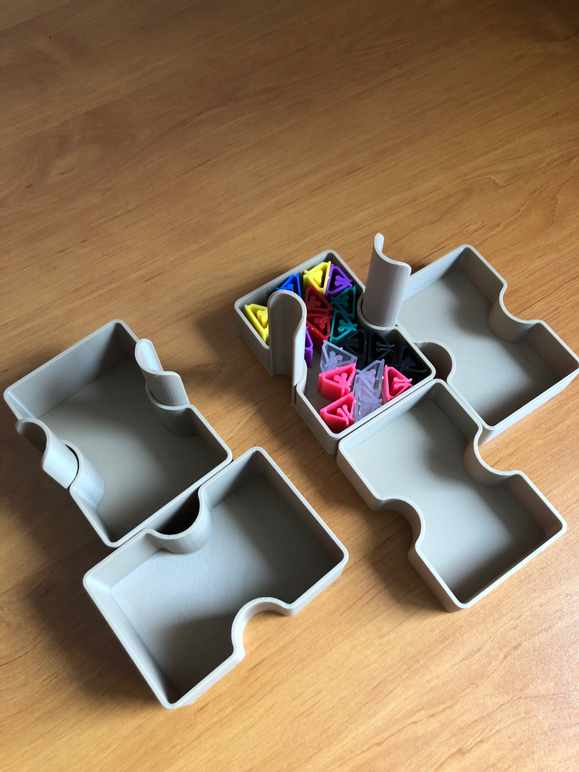 Impression des rangements intérieurs pour les cartes. J’ai essayé de faire simple avec seulement 3 modèles différents. Il suffit des les imprimer en double pour chaque boîte. Je pense avoir fait les parois horizontales trop hautes, les cartes sont un peu difficiles à choper si c’est trop rempli. Pour la dernière boîte, je vais les rabaisser et faire des encoches pour passer les doigts.