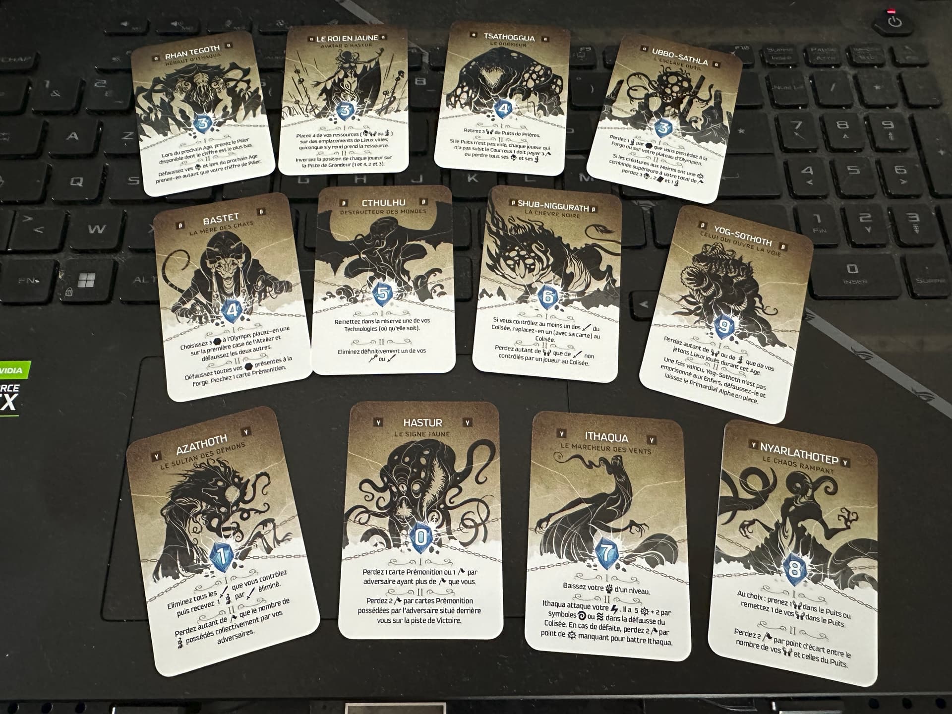 - Prométhée : Il est le seul Prisonnier ayant un effet même si on ne va pas dans son Lieu ! Attention au mouvement des Technologies, ou son propriétaire devra vider le Puits de Prière.