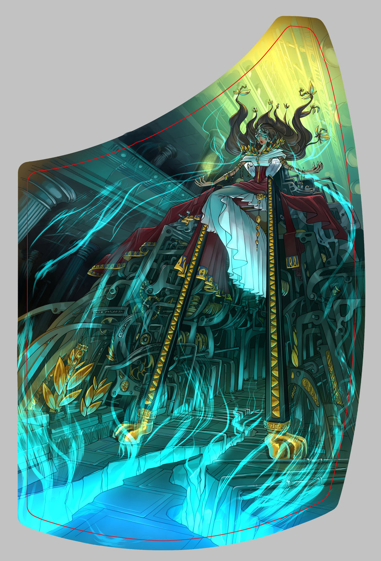 À partir de là, nous avons « brainstormé » afin de définir le rôle graphique de la Pythie. À quoi devait-elle ressembler, son histoire au-delà de son rôle, mais également son environnement. Après avoir répondu à toutes ces questions, l’objectif était de le traduire artistiquement en essayant de véhiculer toutes les intentions et l’histoire d’une Pythie dans Hybris .