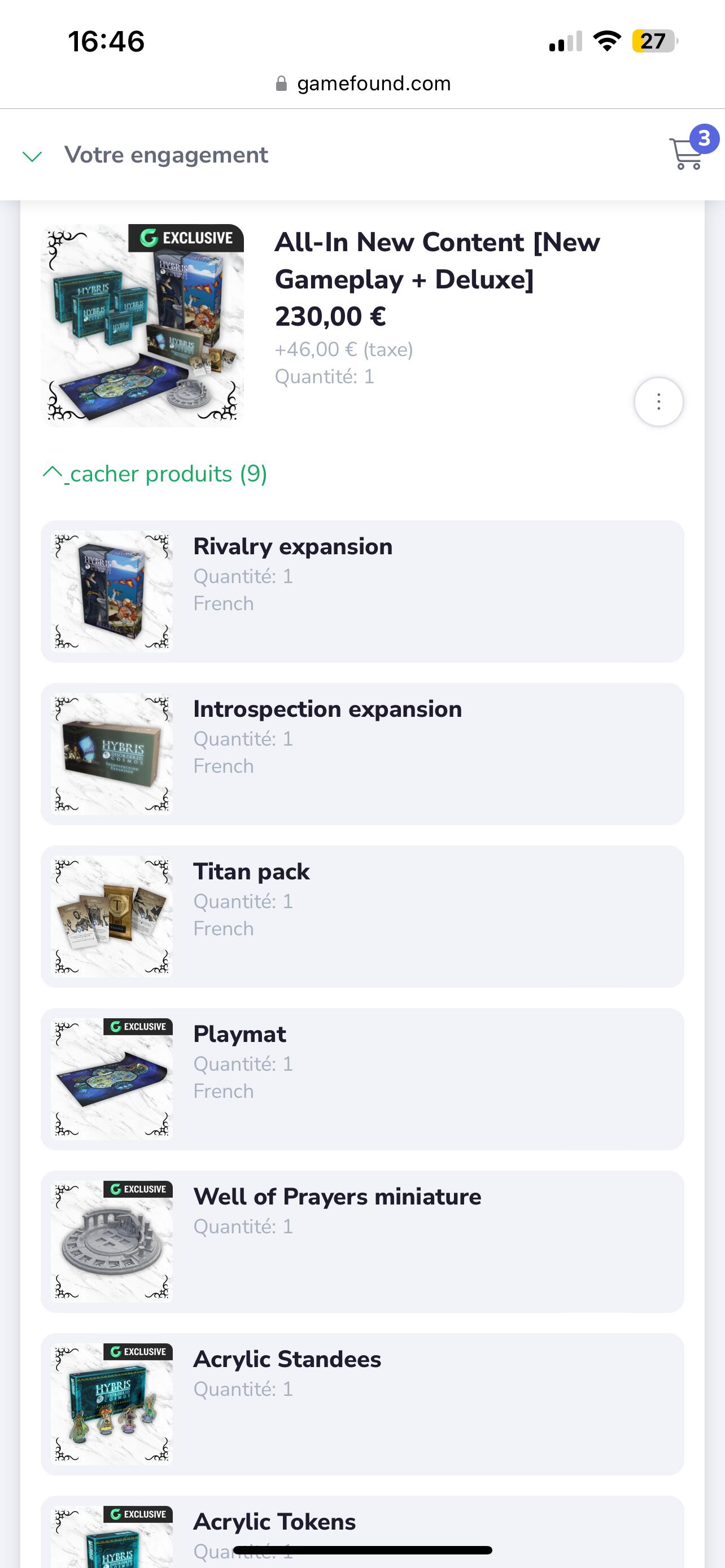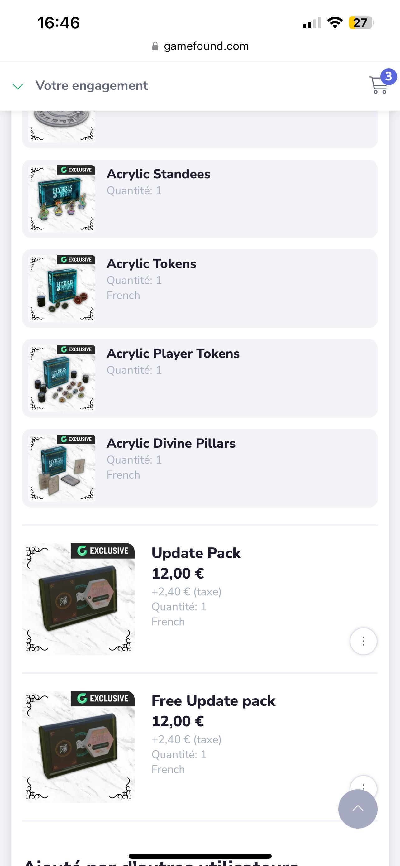 Late pledge validé! ca pique un peu la TVA, j’avais oublié … Plutôt bon signe, ça veut dire que je n’achète quasi plus de jeux! ![]()