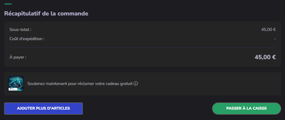 Plusieurs personnes sont également dans votre cas @vin-parker et @rodskin… L’équipe essaie de comprendre pourquoi pour régler le soucis. C’est peut être du à la plateforme Gamefound. Il y a déjà eu quelques soucis techniques lors de l’élaboration de la page, et il me semble que le staff à su être réactif la dessus.