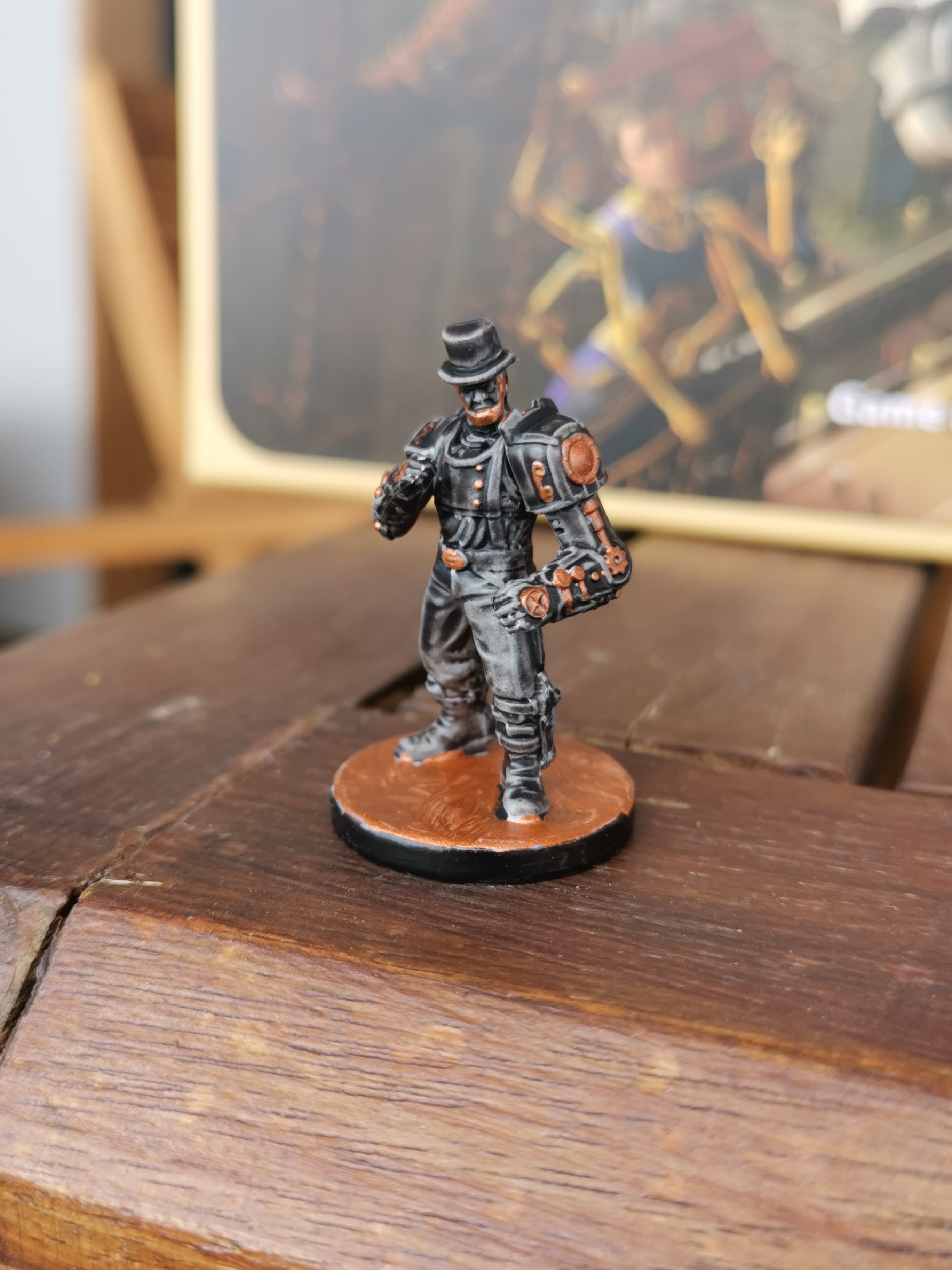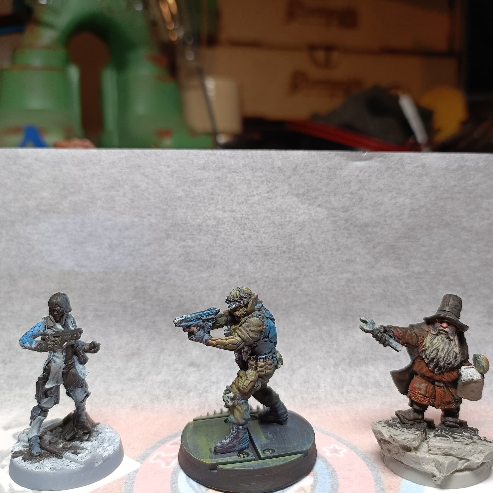 Me revoilà, hier j’ai peint une impression ( au milieu) terminée aujourd’hui et commencer une 2efig pour Défiance si je veux y jouer un jour …