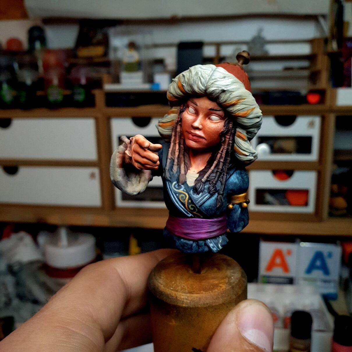 Histoire de changer d’univers (la piraterie, c’est bien, mais je commençais à saturer), tout début de wip sur un petit buste après une petite soirée de boulot dessus.