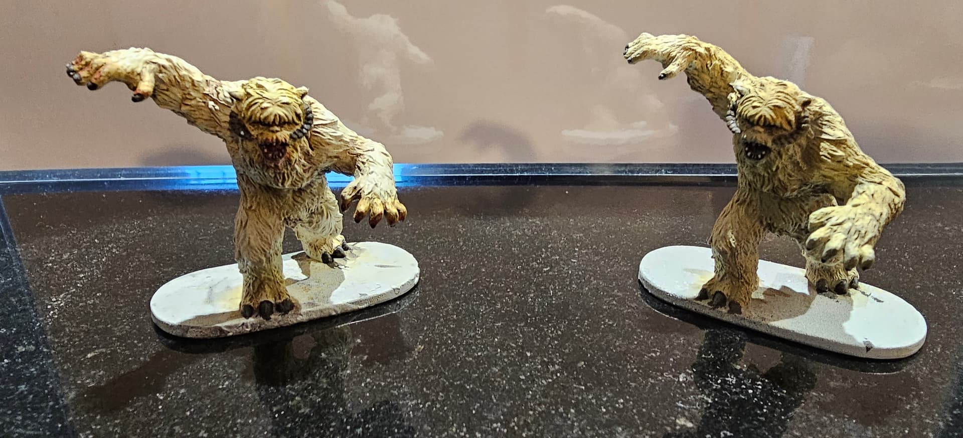 En fait j’ai pris tout ca parce que je trouve que les figs sont détaillées, variées et agréables a peindre. En plus c’est mes 1eres peintures et le fait que Sorastro a des videos de tuto pour chacune aide beaucoup a l’apprentissage. Au début je me collais vraiment aux tutos et petit a petit je dérive et ajoute mes touches persos comme sur le AT-T ou meme le wampa de gauche qui est en fait (ca se voit pas trop) beaucoup plus clair que celui de droite car peint avec des étapes différentes.