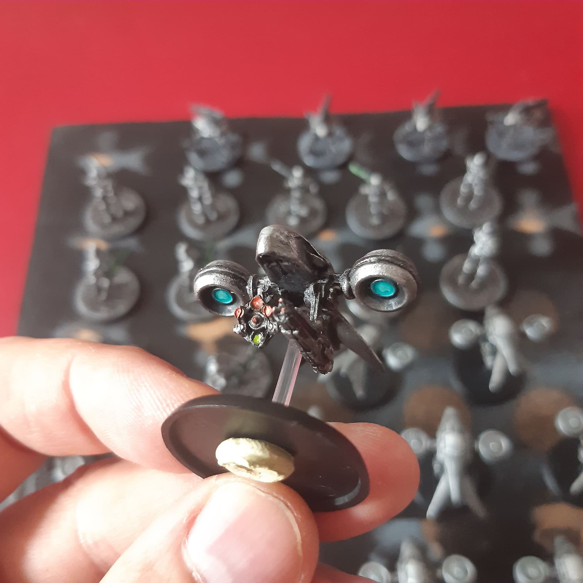 Ce n’est que mon avis, mais je trouve que les « creux » noirs sont trop présents, trop larges et trop contrastés avec les zones colorées. Ca donne une figurine très sombre.