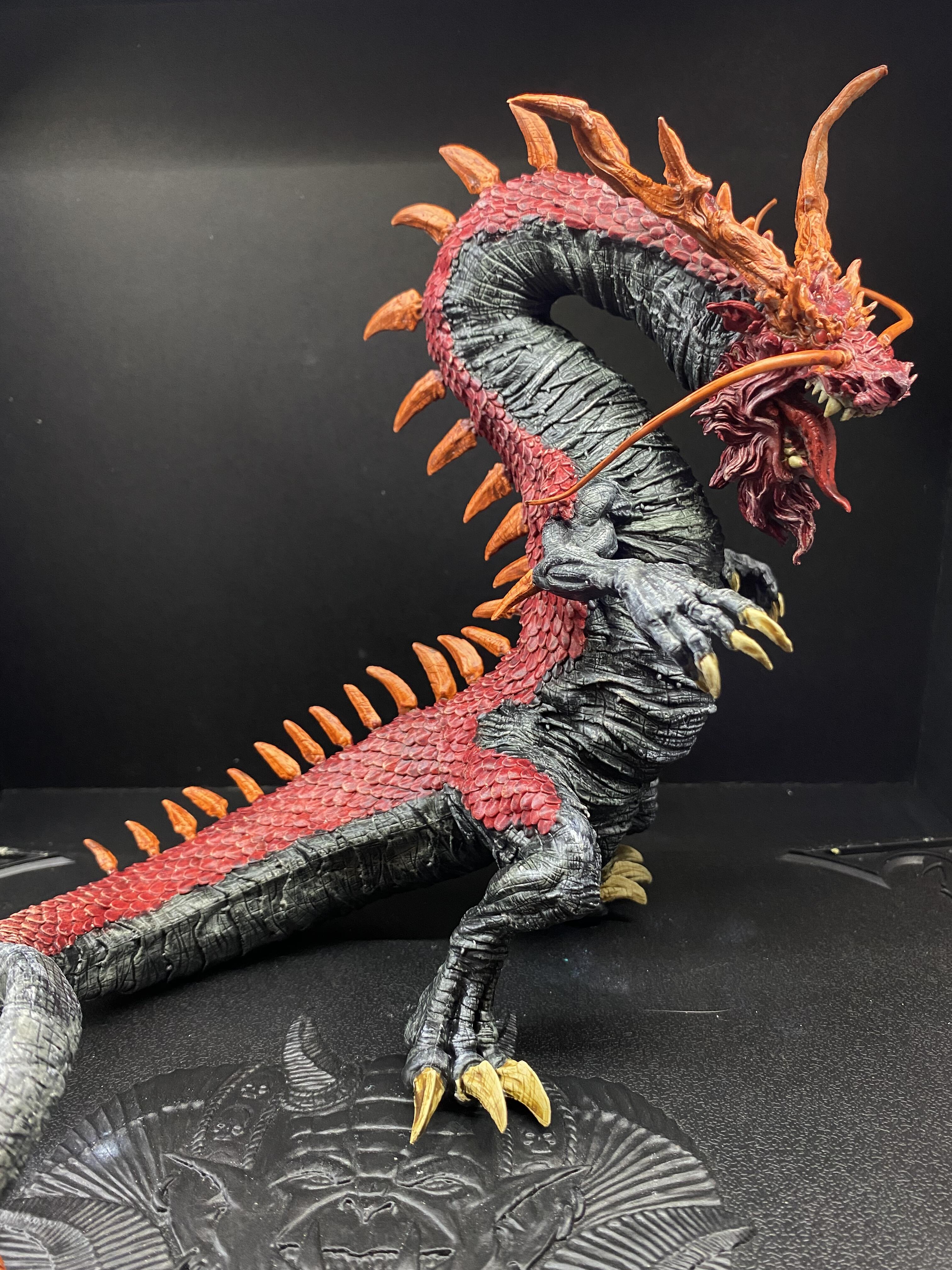 Beaucoup de plaisir à peindre cette imposante figurine (une première pour moi de peindre aussi gros), malheureusement je ne suis pas photographe et les photos ne rendent pas tip top le résultat.