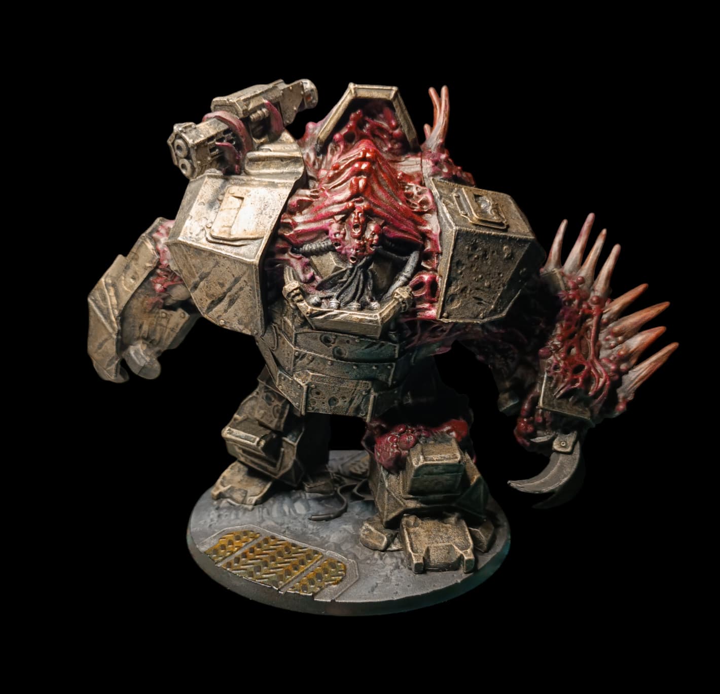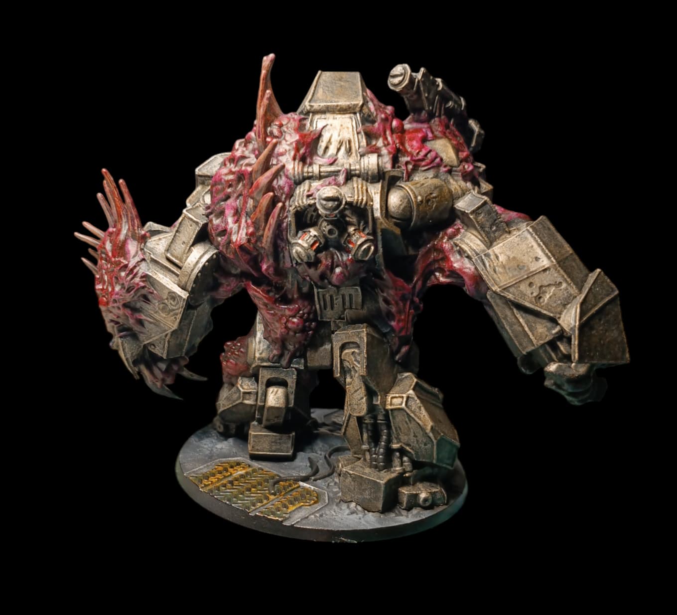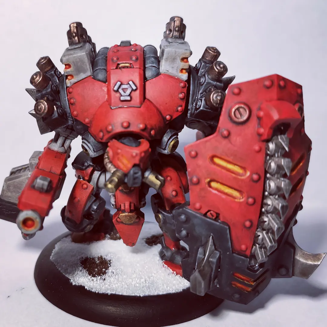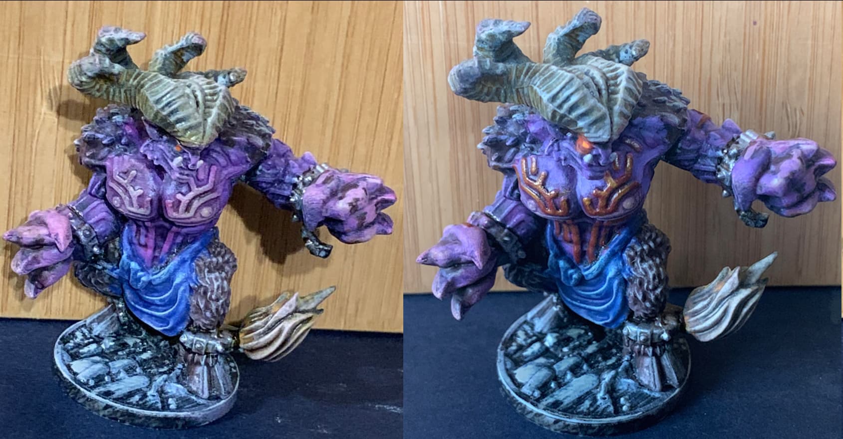 Juste pour montrer qu’en peu de temps (à vue de nez je dirais 30 mins) on peut réelement améliorer des figs en corrigeant des détails. Et encore, la photo ne rend pas justice aux améliorations : yeux, cornes assombries derrière & éclaircies devant (pour attirer le regard vers la face), contours noirs autour des métaux.