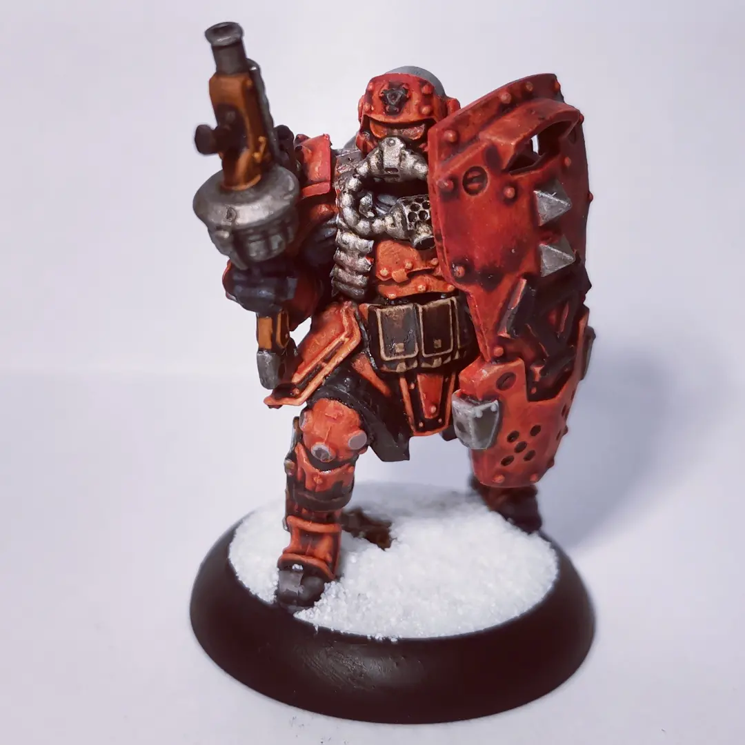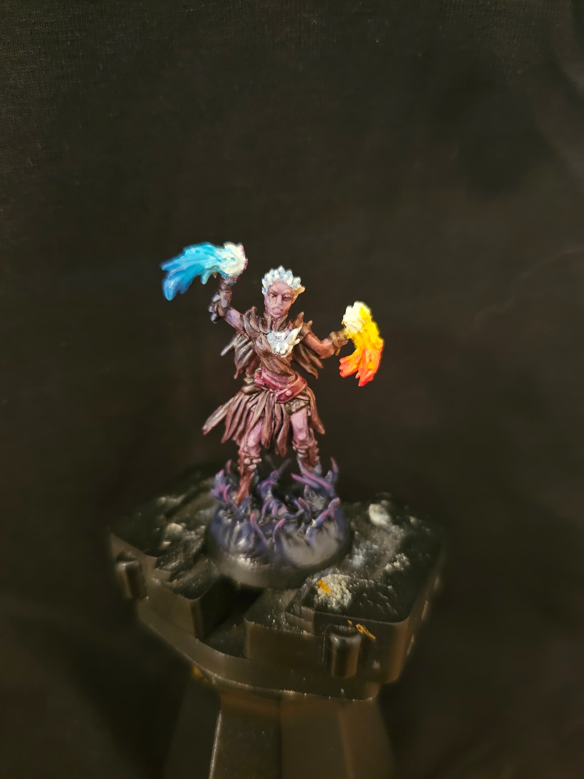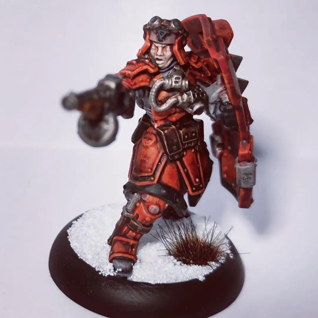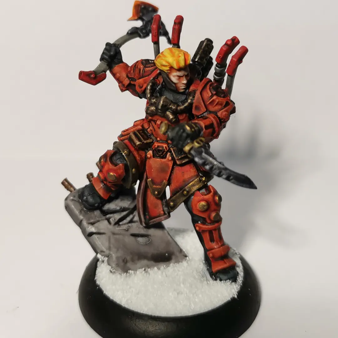 Un de mes cadeaux de Noël ayant été un cours de peinture, j’en ai profité pour (faire) améliorer une de mes figurines (pour du tabletop, que mes figs soient plus lisibles, qu’elles claquent un peu plus).