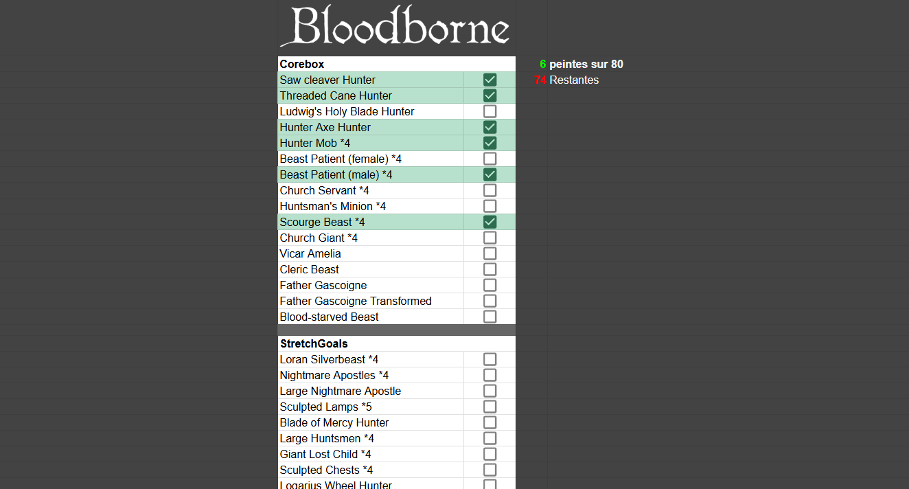 Non parce que là j’ai passé les 2 derniers jours à faire un google sheets de toute mes figurines à peindre classées par jeux et par boites avec des checkbox et des changements de couleurs et des synthèses et j’en suis pas peu fier ![]()