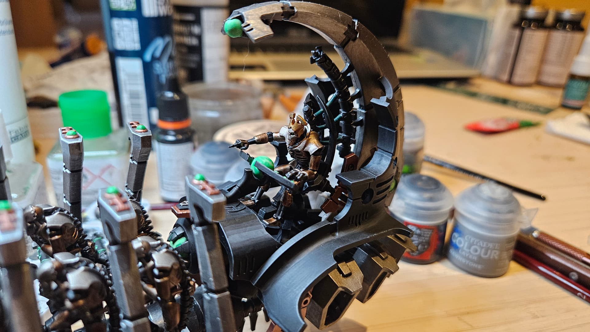 Mes chers collègues ont eu la merveilleuse idée de m’offrir une arche du jugement Nécron pour mon anniversaire et je met un point d’honneur à peindre de suite les figs qu’on m’offre.