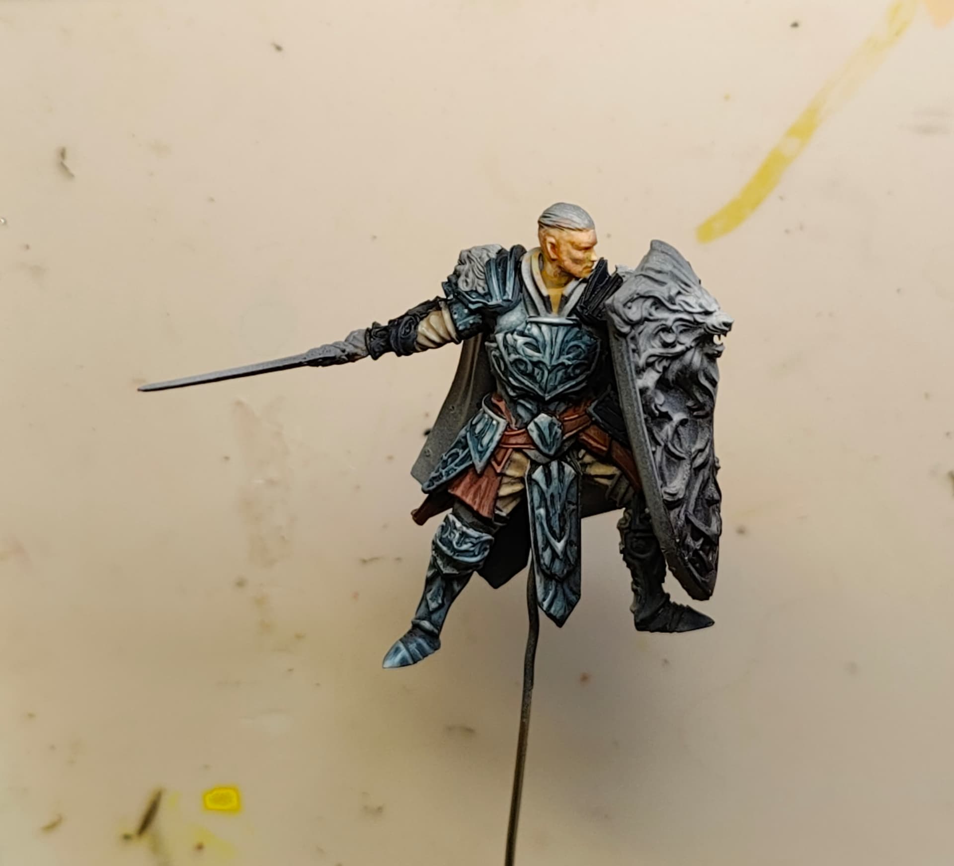 J’avais pensé un NMM or pour contraste avec l’armure mais je doute. Z’en pensez quoi? Ou alors en gardant le bouclier comme l’armure et juste la tête de lion en « or »? Ou autres choses?