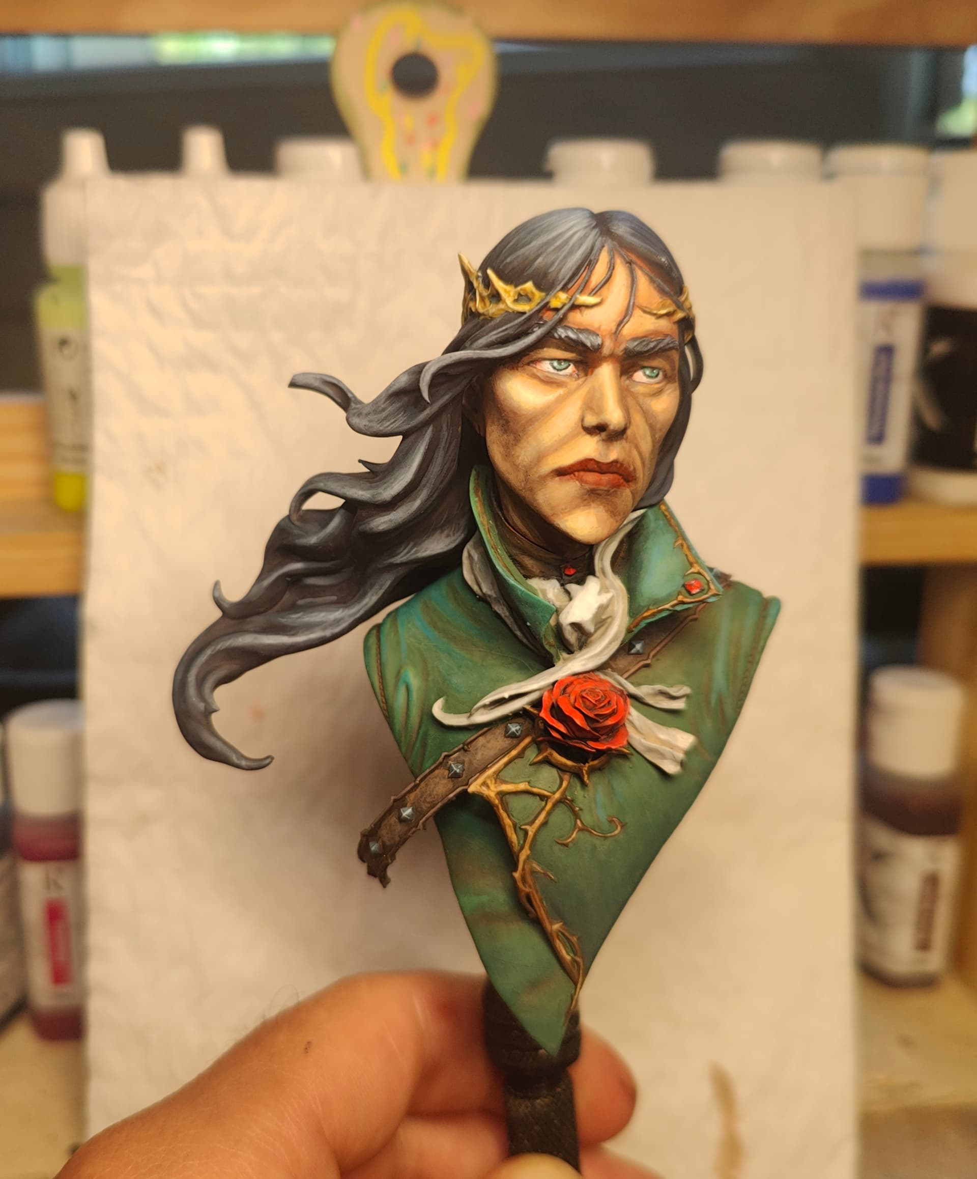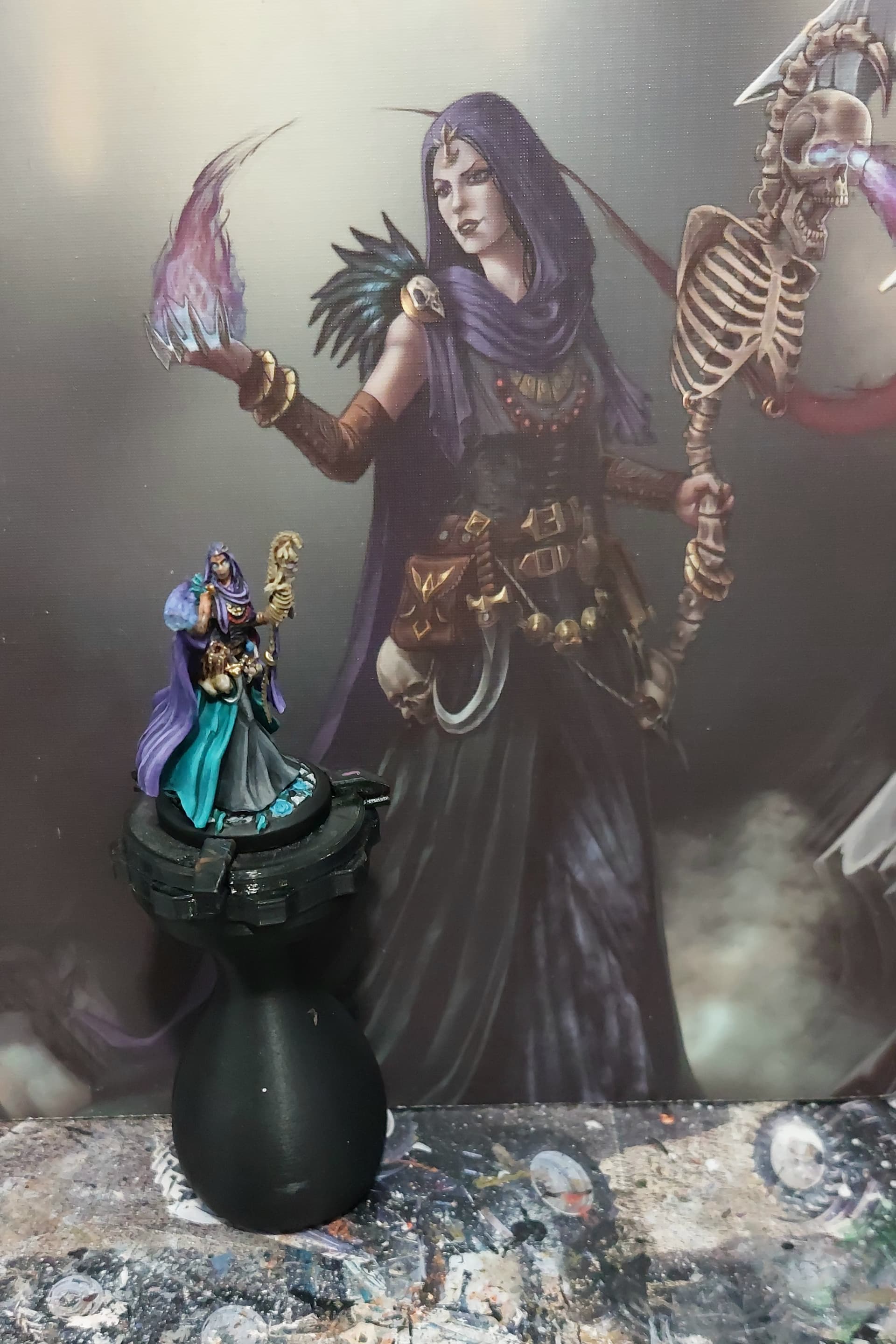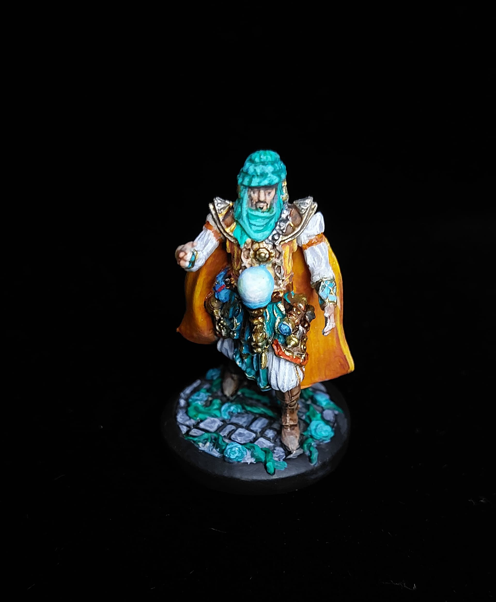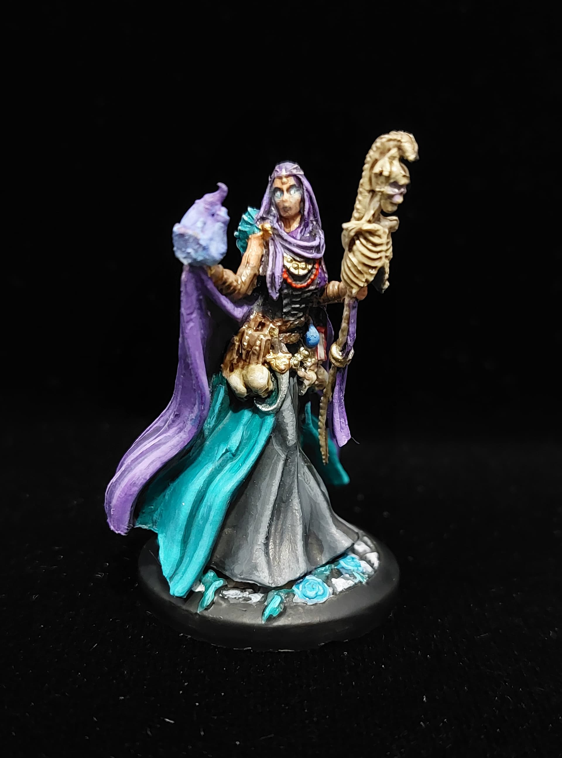 N’ayant pas encore lu les règles/histoire je suis parti dans l’idée de lames empoisonnées et donc de tissu vert pour donner du peps à cette figurine vêtu de noire.