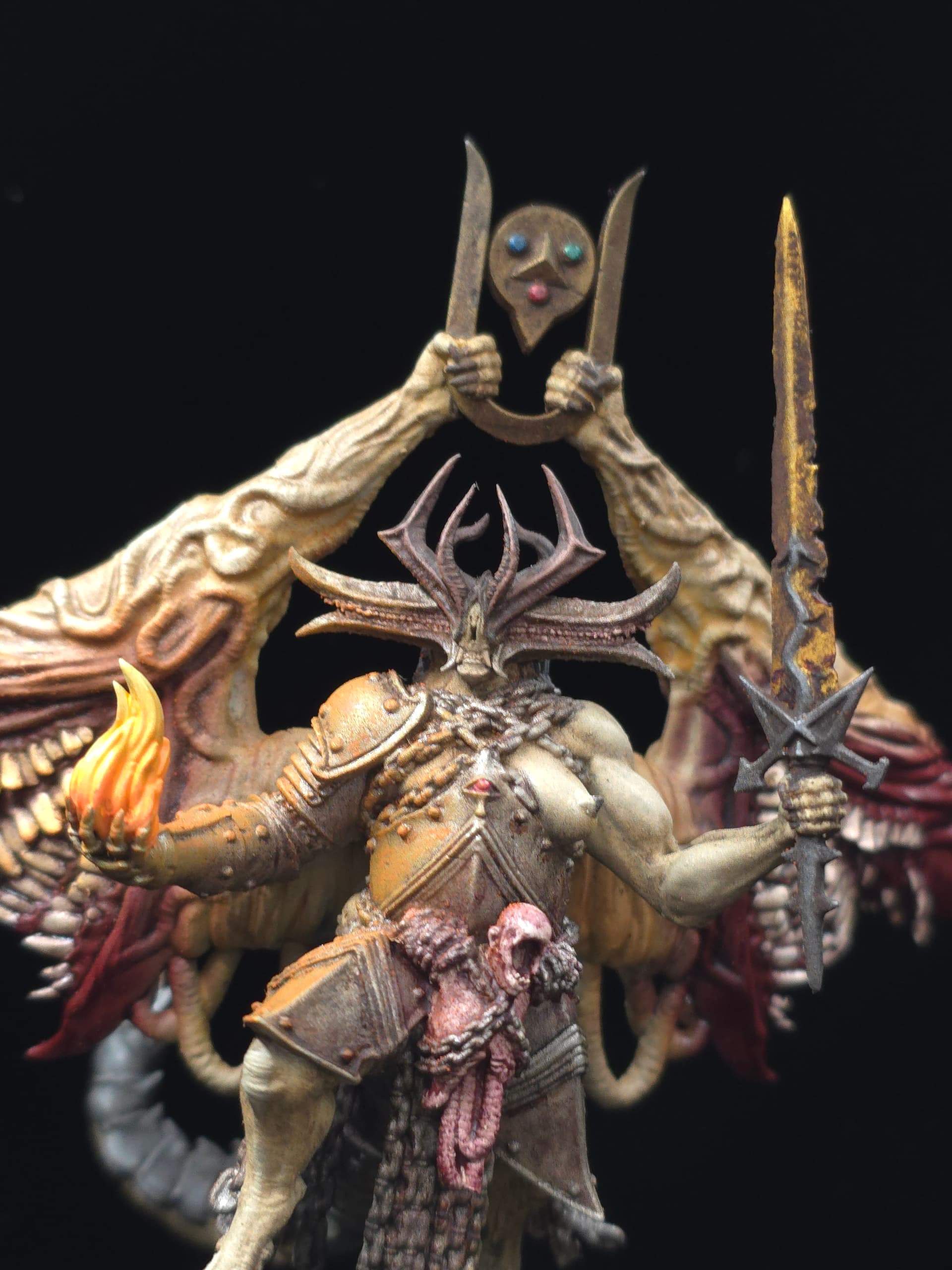 J’ai essayé de pousser le contraste plus que ce que j’ai l’habitude de faire. Ça marche pas trop mal sur le pantalon. Je suis assez content du NMM sur l’armure car vu la dimension de la surface à faire, c’était un peu intimidant au départ. Le lining en noir sur un des deux est trop fort, il n’y a pas trop d’effets sur la fourrure, mais bon, j’en suis content quand même.