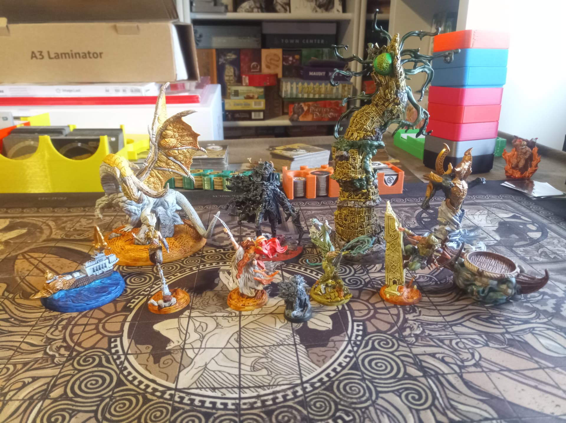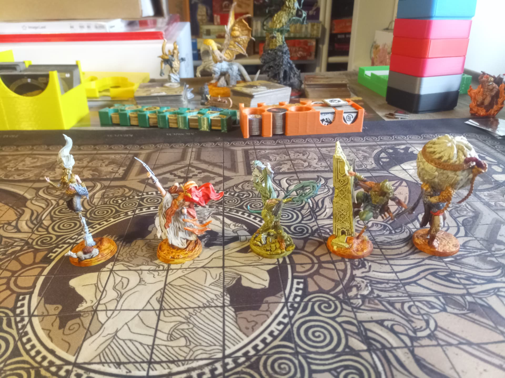 Pour l anecdote, je fais des socles noirs avec un contour coloré propre à chaque dieu (pour le coté piece maitresse dans le jeu) Pour eux, j ai choisi doré et argenté pour le clin d oeil à Saint seiya.