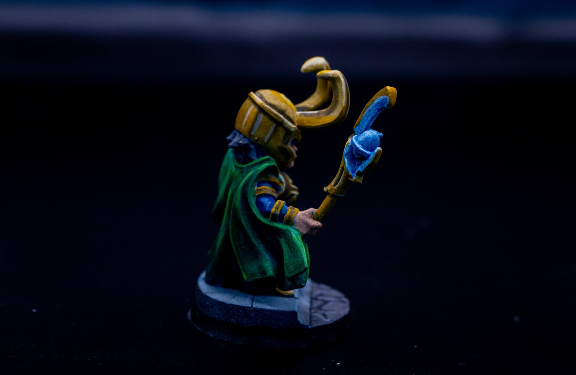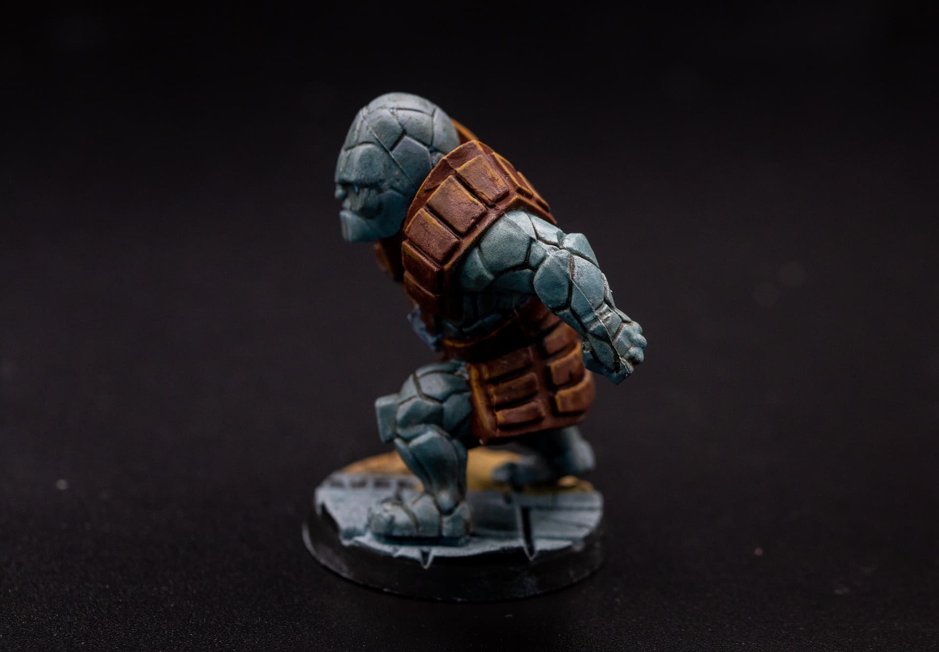 Avec une grande première pour moi : la peinture à l’huile. Bon, c’est un peu le bordel et même avec du white spirit odourless, ça pue. Mais par contre, c’est sympa. Je m’en suis juste servi pour faire des wash dans les creux et sur le socle, mais ça m’a déjà bien convaincu, il faudra maintenant que je passe aux highlights pour voir ce que ça donne.