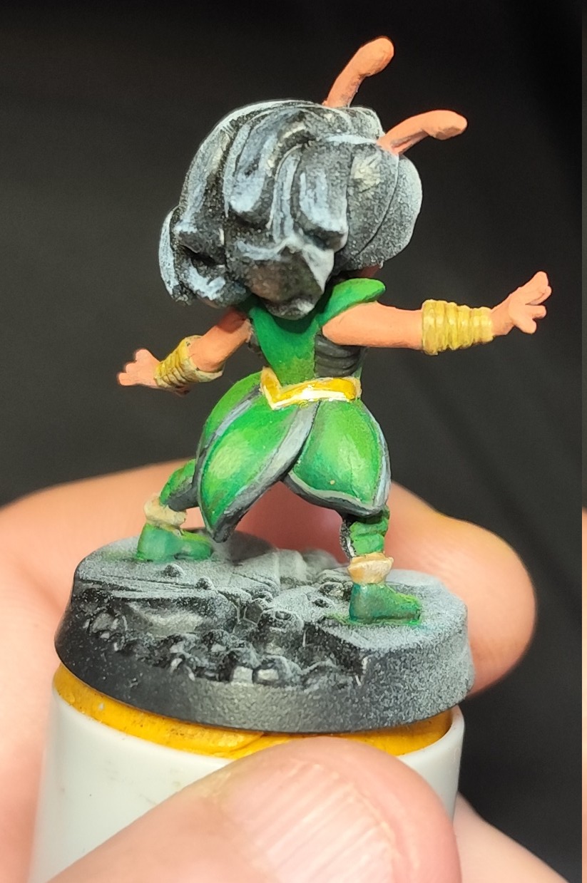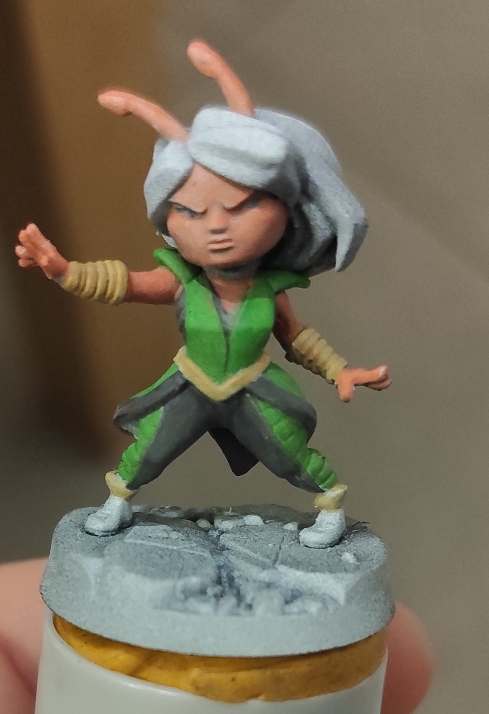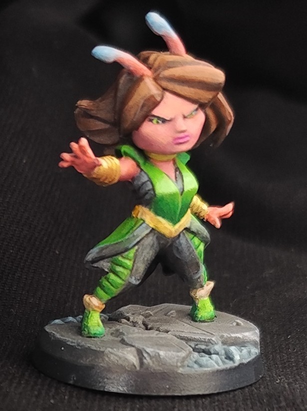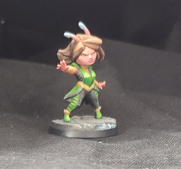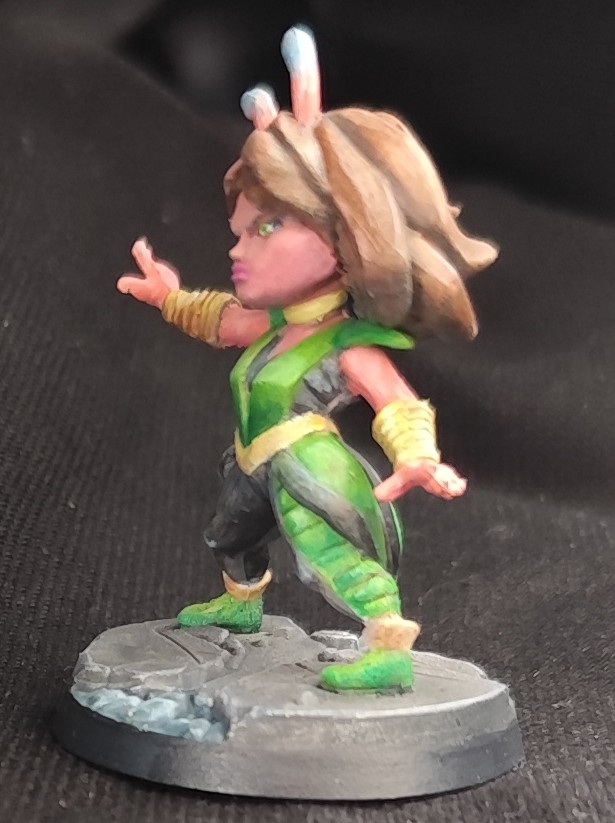 Et voilà Mantis de Marvel United, clairement pas ma meilleure peinture, mais ça fera le job.