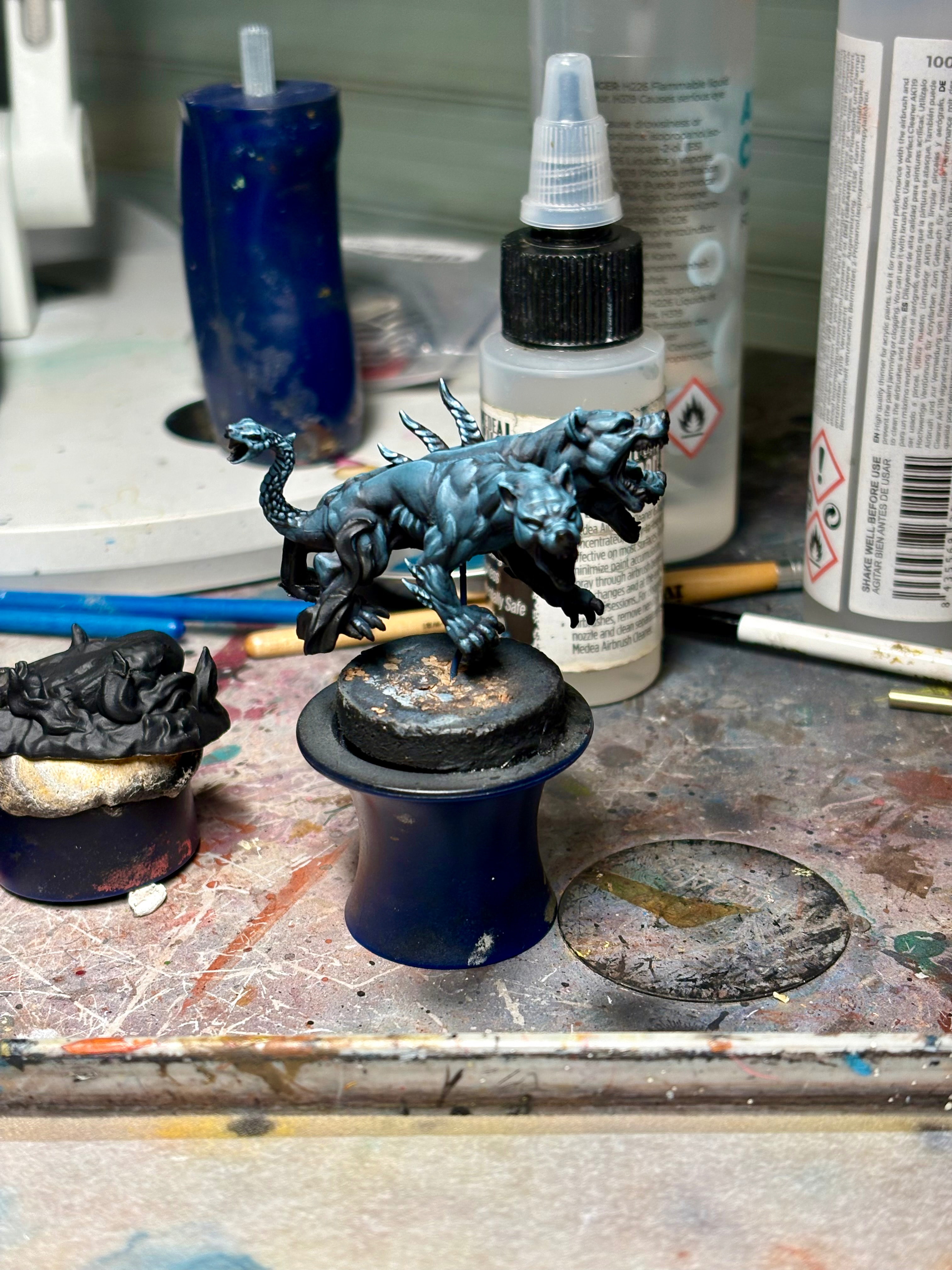 Je suis content de la peau de cerbère , en dehors des OSL je n’ai utilisé que de l’anthracite grey de chez ak, assombri au dark sea blue ou éclairci au blanc pur.
