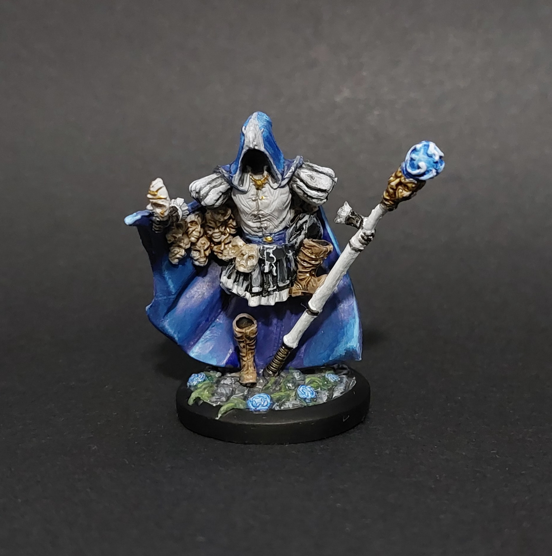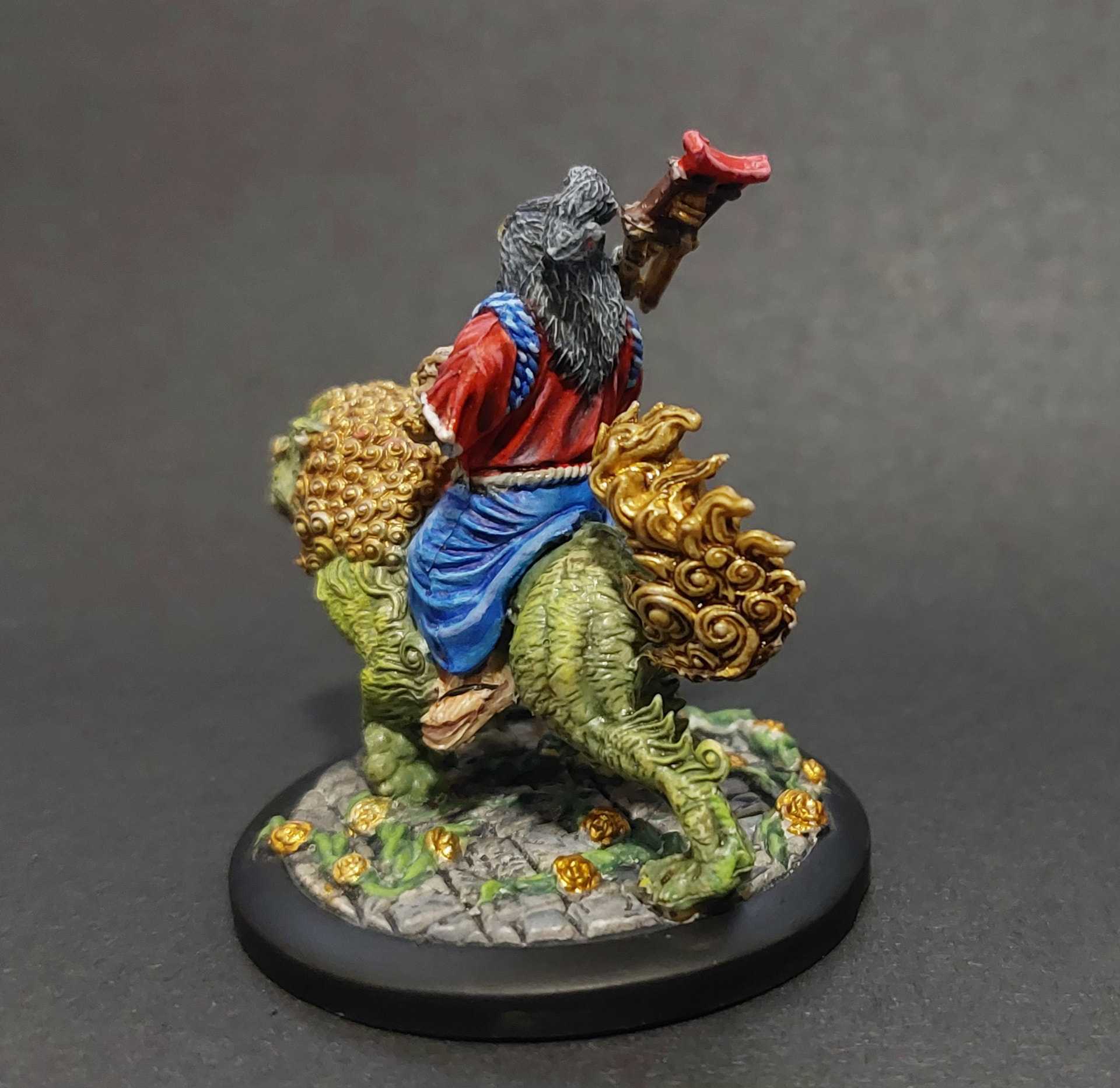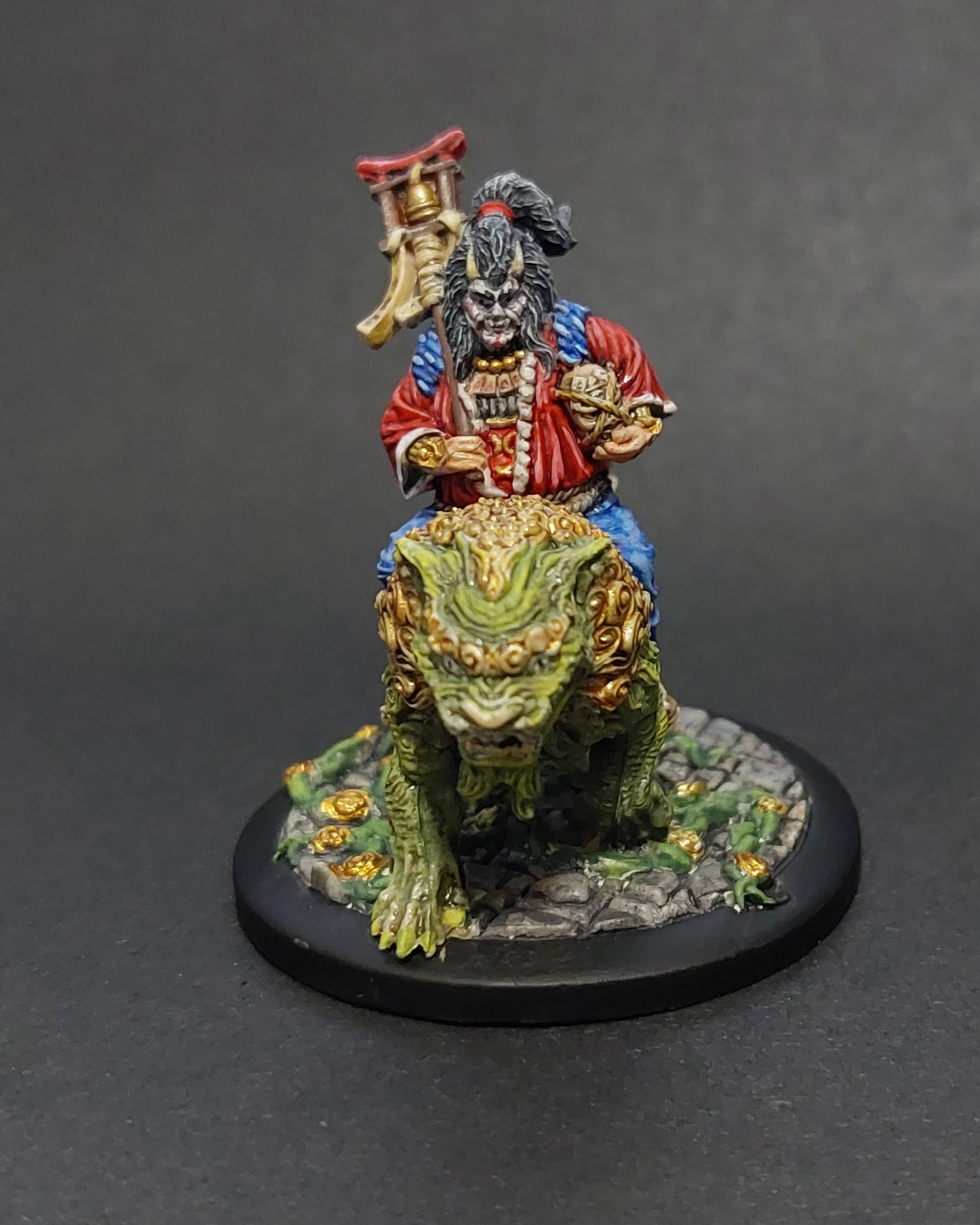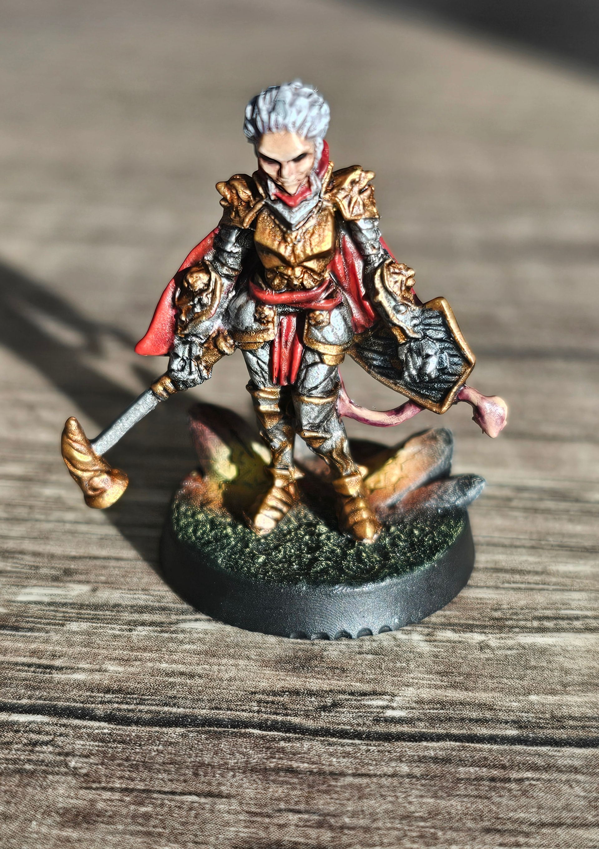 Fait juste avant la séance de jeu de ce week end (on en avait besoin pour la rencontre où on s’était arrêté). On l’a joué sans le vernissage (hérétique!!! Bon évidemment j’ai pas laissé les joueurs le toucher :D), mais je viens de le faire. Vu que je n’ai eu que deux heures (le socle et la colonne était déjà fait depuis une autre séance peinture où j’avais du gris en rab sur la palette!), je n’ai pas pu arriver à mettre le focus comme je voulais, donc si ça me chauffe trop je le reprendrai (même si je déteste ça après l’étape vernis…).