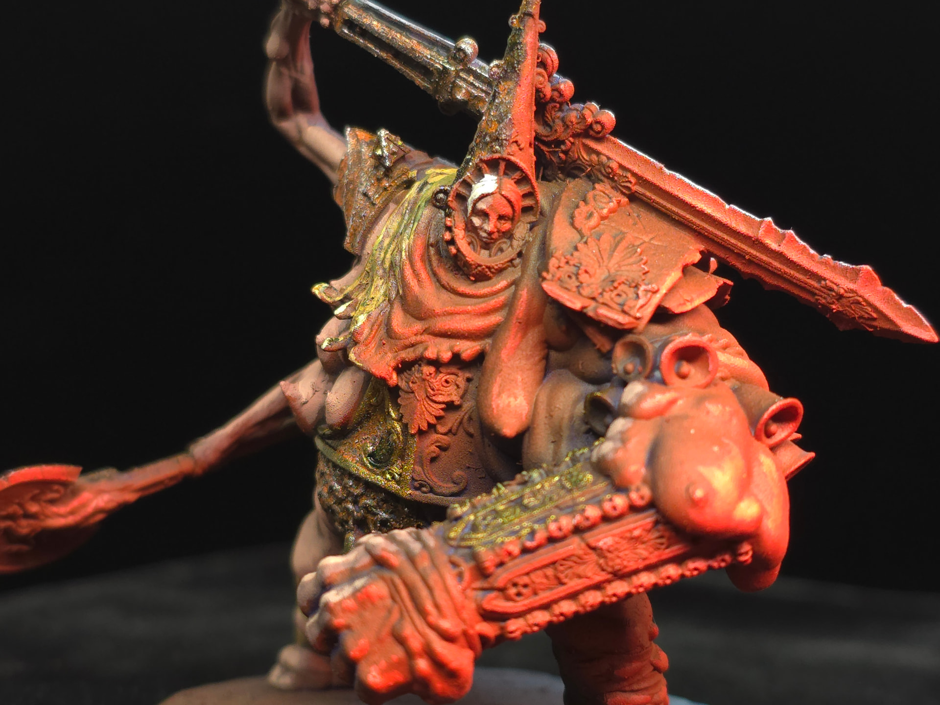 J’ai voulu créer un style que j’appellerai Moonlight / redshadow mixé avec du Grimdark en me basant sur un tuto d’un peintre YT.