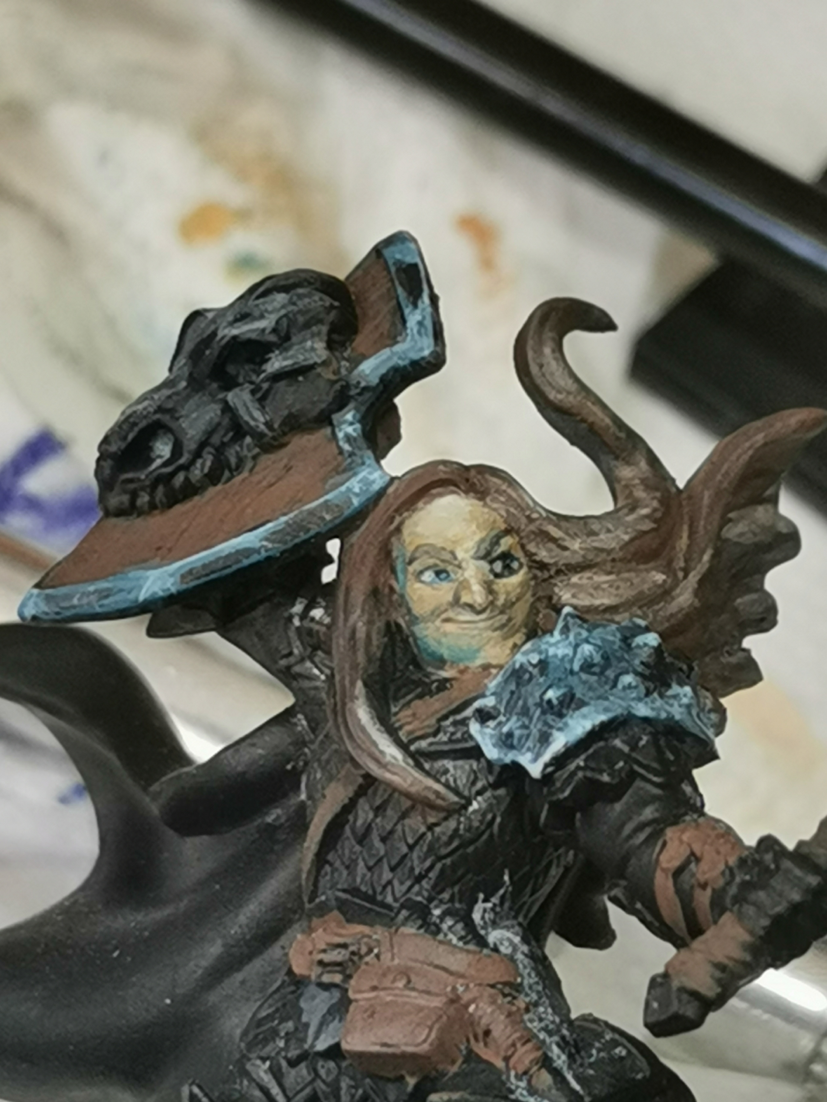 C’est sûr que c’est pas du pochoir. Boulot de fou ! Si on peut se permettre une légère critique sur un tel concentré de talent, je trouve l’ombre portée autour de l’oeil gauche en deçà des autres travaux d’ombrages (pour ne pas dire performance d’ombrage) sur cette figurine.