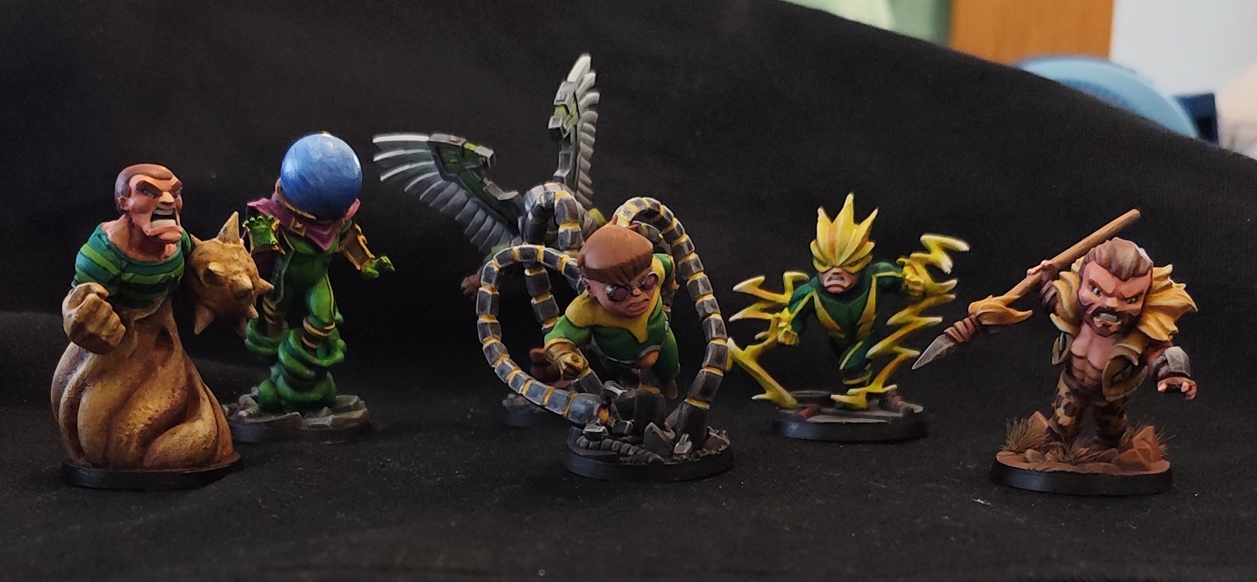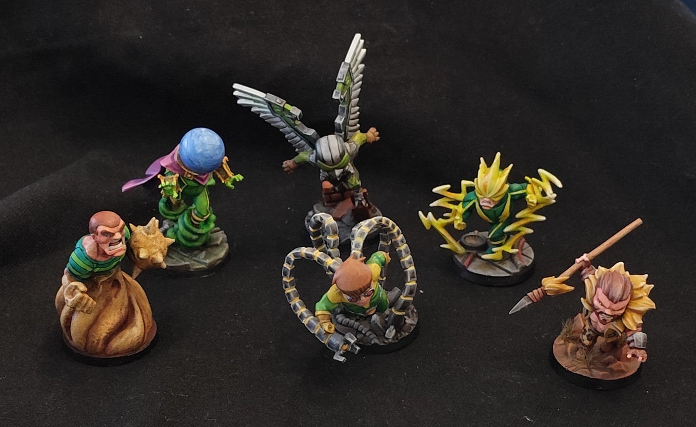 Je suis bien content car les figurines avaient toutes des twists : pigments sur Sandman, le casque sur mysterio, les ailes et le NMM pour vulture, les éclairs pour electro, le pantalon léopard pour Kraven, le NMM pour Octopus.