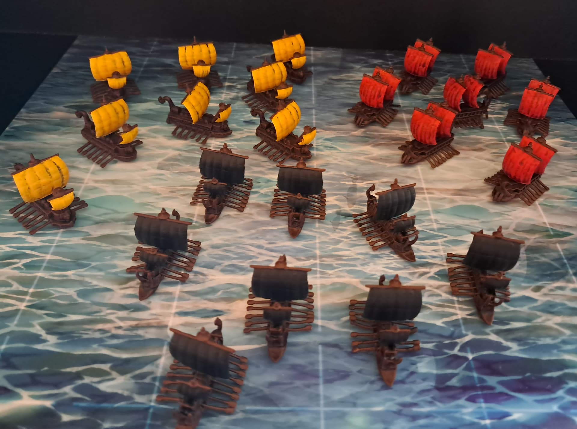 Voilà, fini. Les troupes et bateaux joueurs je les laisse tels quels pour la lisibilité du jeu…et mon courage disparu de les peindre.