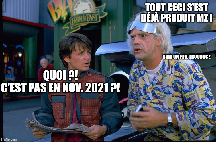Je crois mĂȘme que jâai rĂ©ussi Ă maitriser (presque) le voyage temporel : jâai rĂ©ussi Ă me transporter plusieurs fois au bout du topic, mais malheureusement cela ne dure pas : je suis systĂ©matiquement renvoyĂ© Ă mon temps de dĂ©part au bout de quelques instantâŠ
